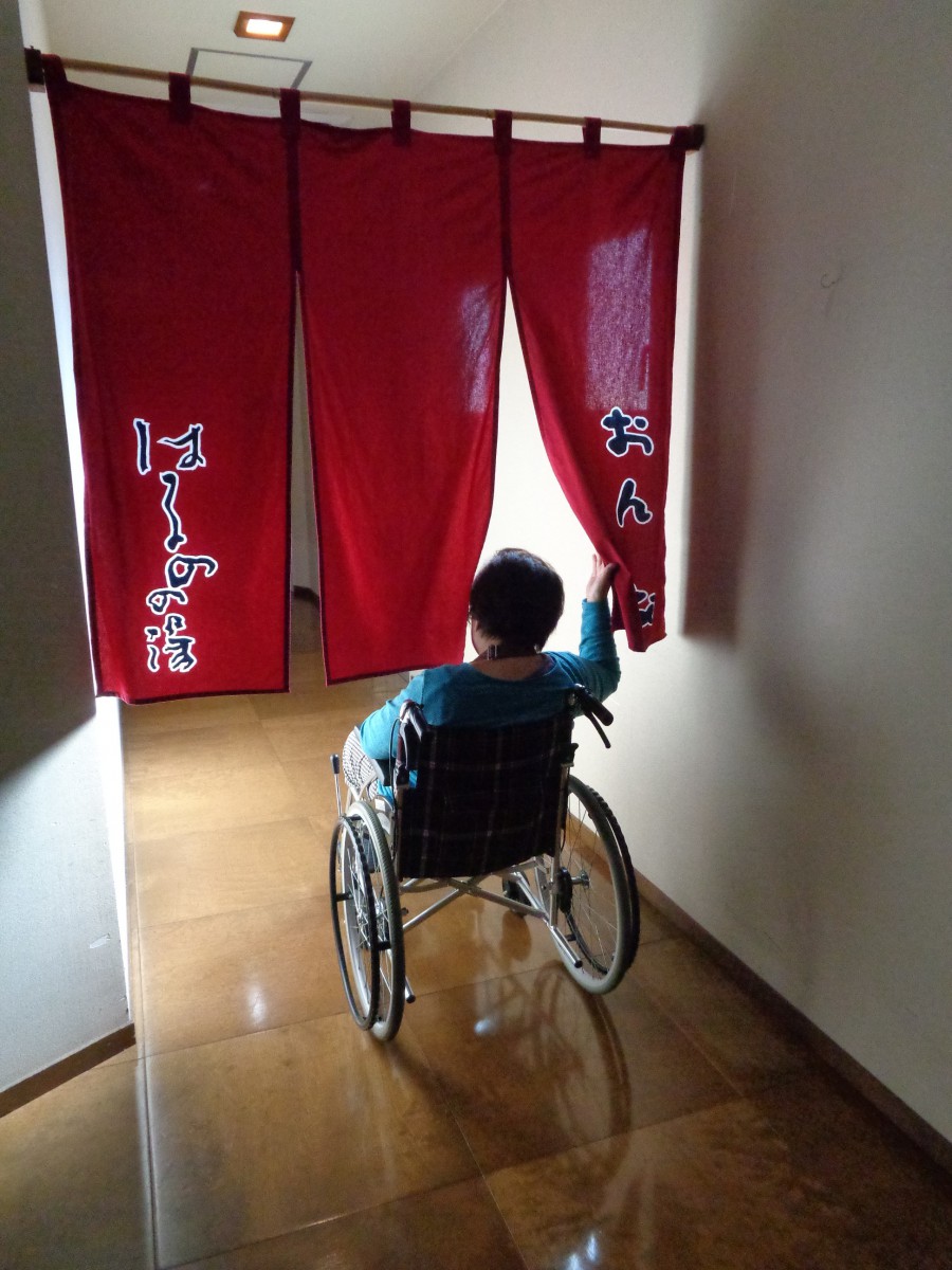 大浴場入口 のれんの先にスライド戸 ドア下段差なし