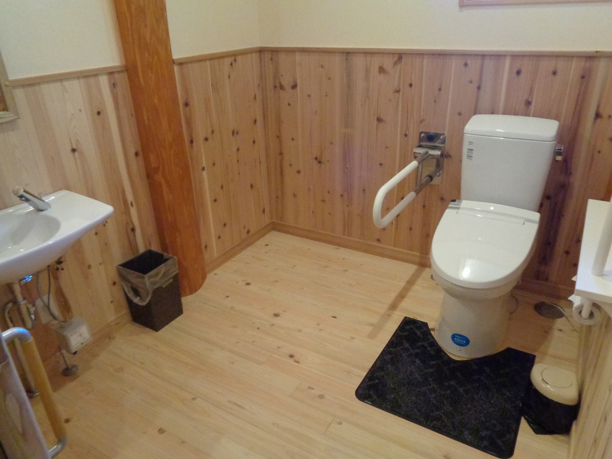 ログハウス 車いす対応トイレ内 設備 手すり右側L字 左側U字