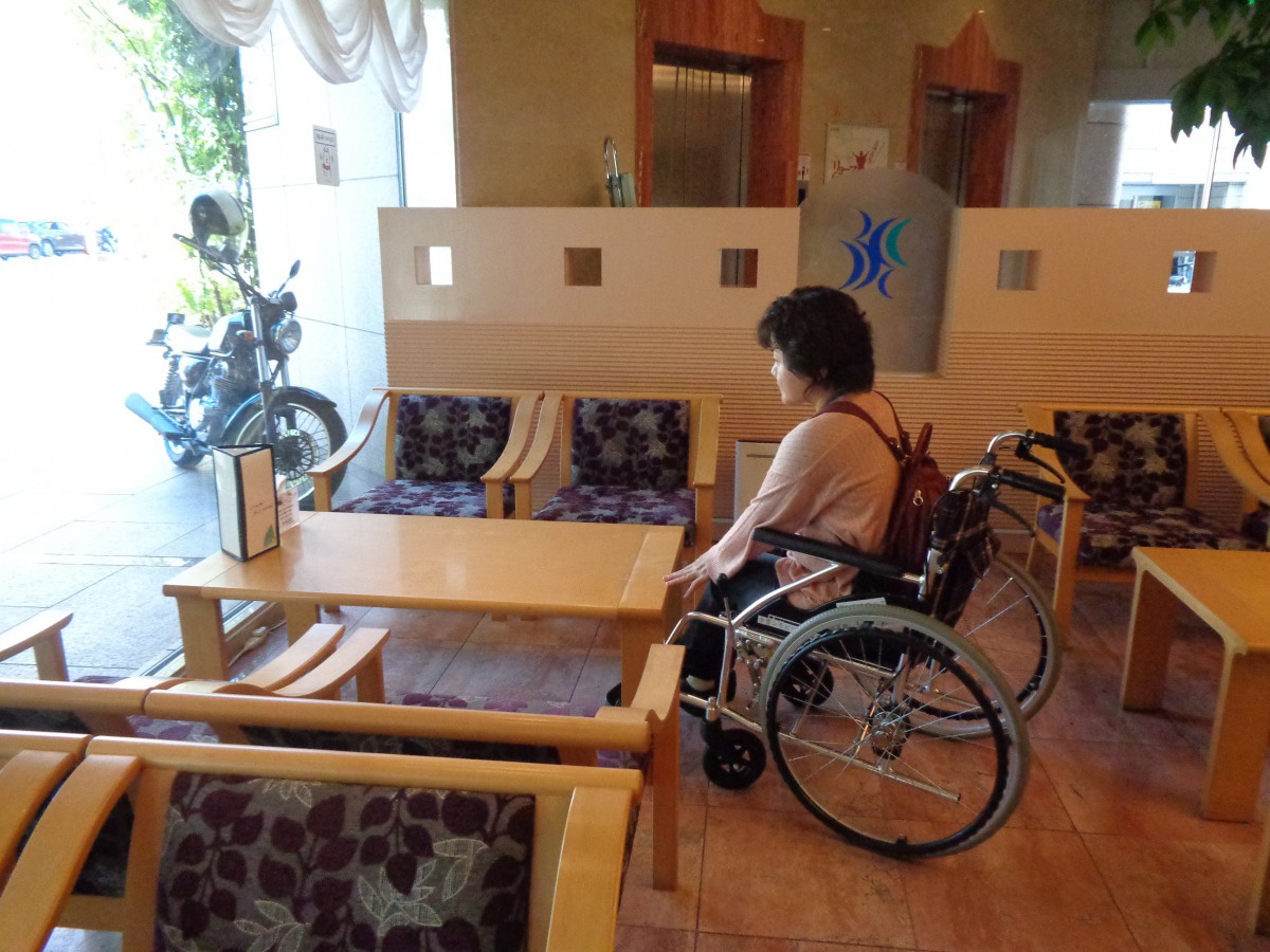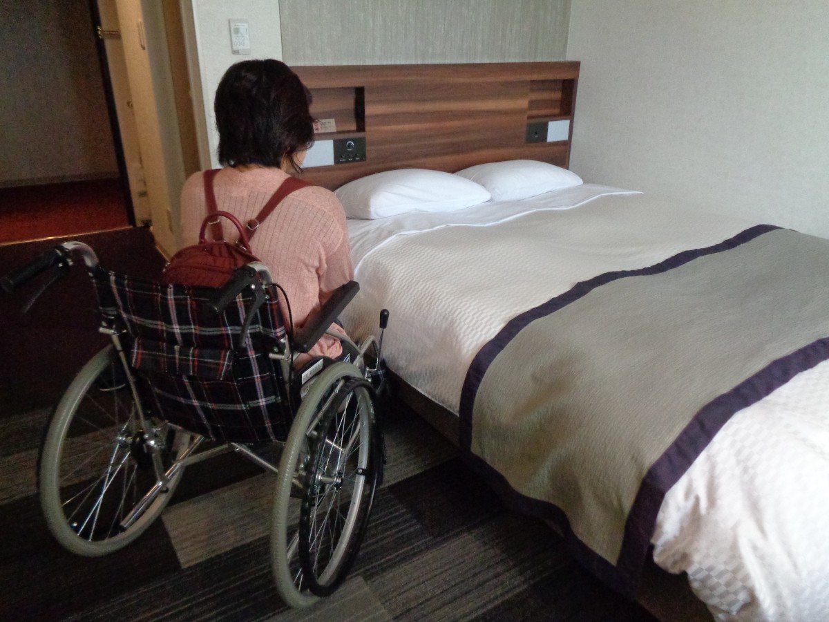 10階 ダブルルーム(1005号室) ベッドのあるスペースは靴を脱いで上がる 車いすはタイヤカバーをするかタイヤを拭くこと
