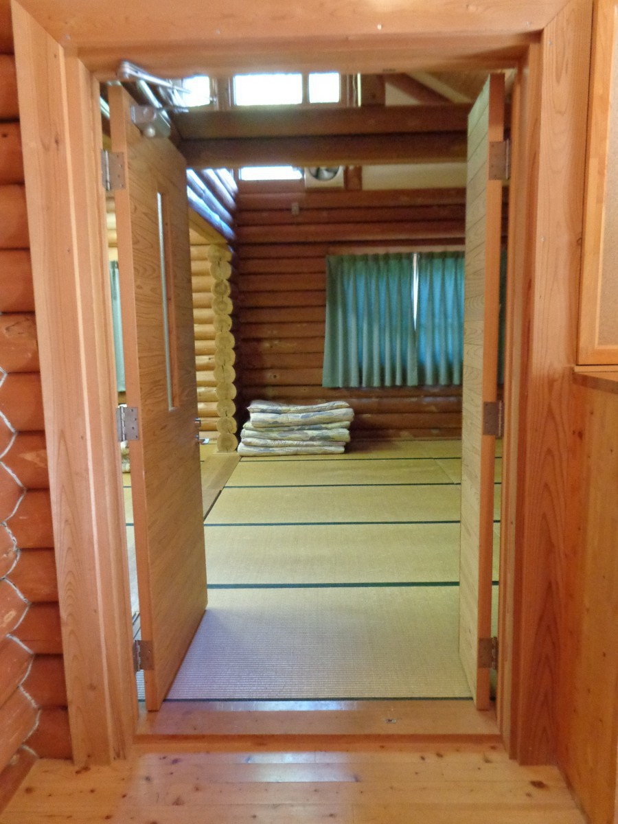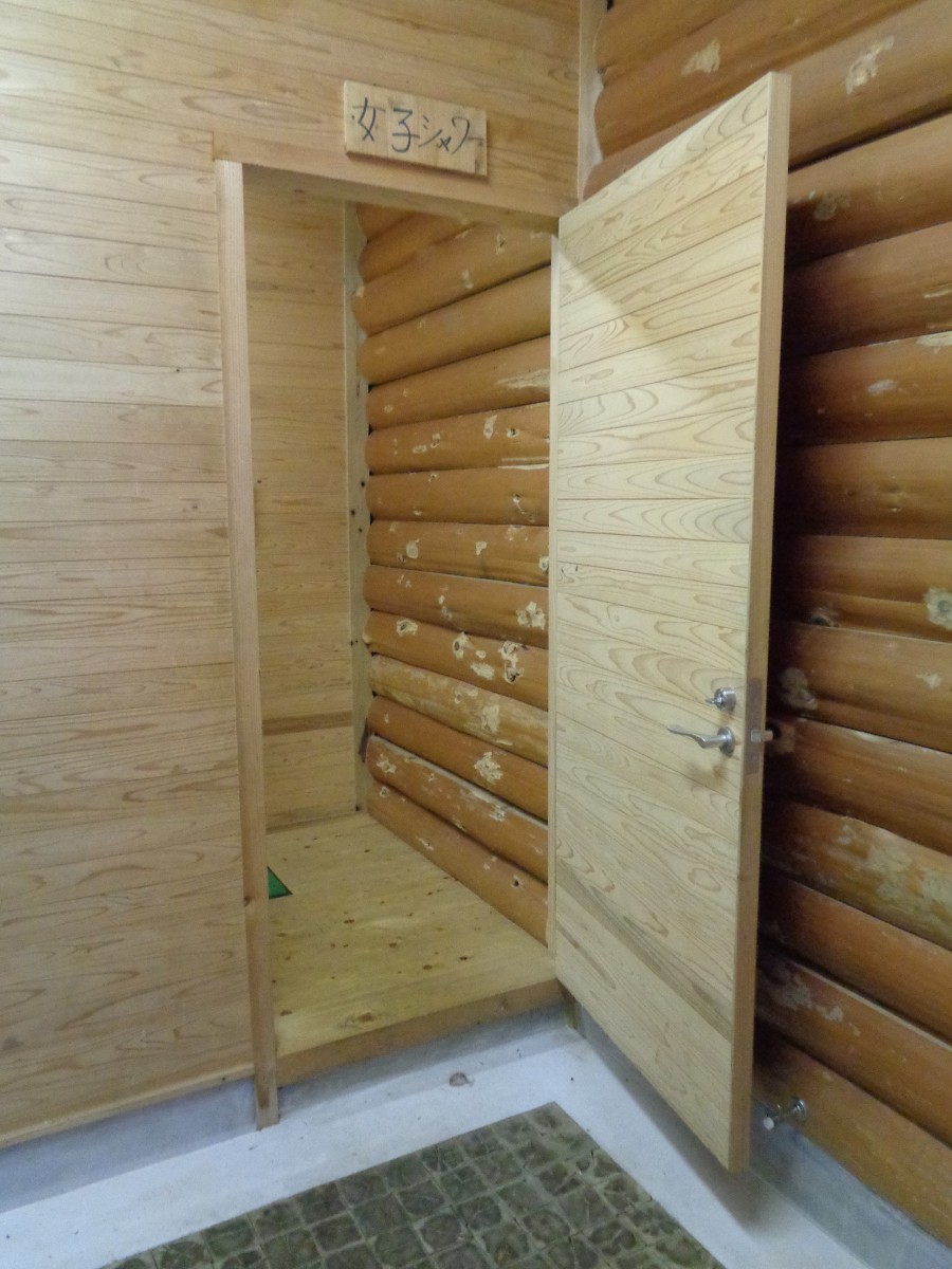 研修宿泊棟の女性用一般トイレ 入口幅73センチ ドア下段差10センチ 和式3室あり