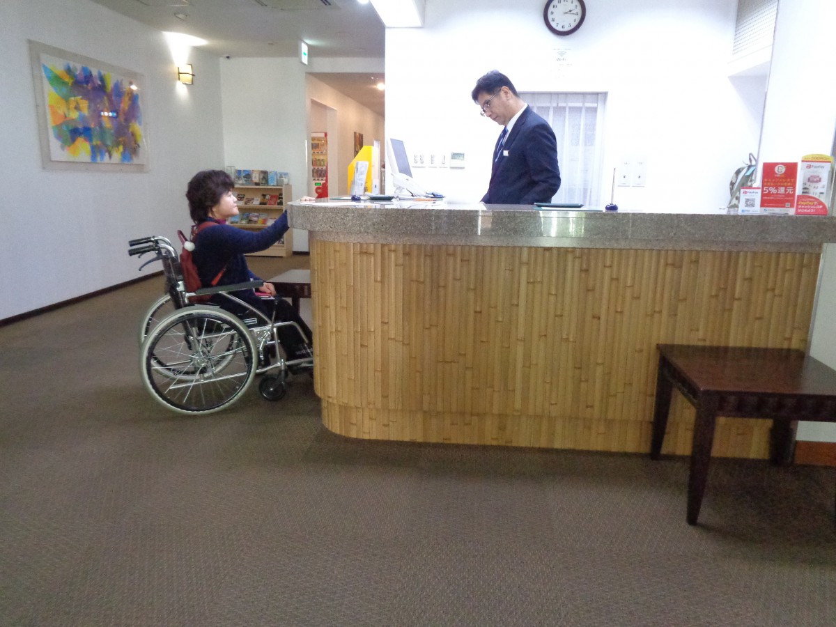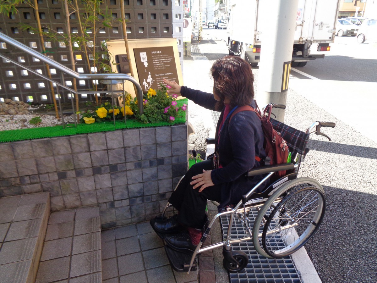 階段下にインターフォンあり 介助が必要な方はスタッフをお呼びください