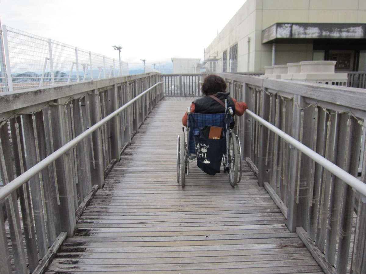屋上 送迎デッキ 床は木製で車いすでも利用可能