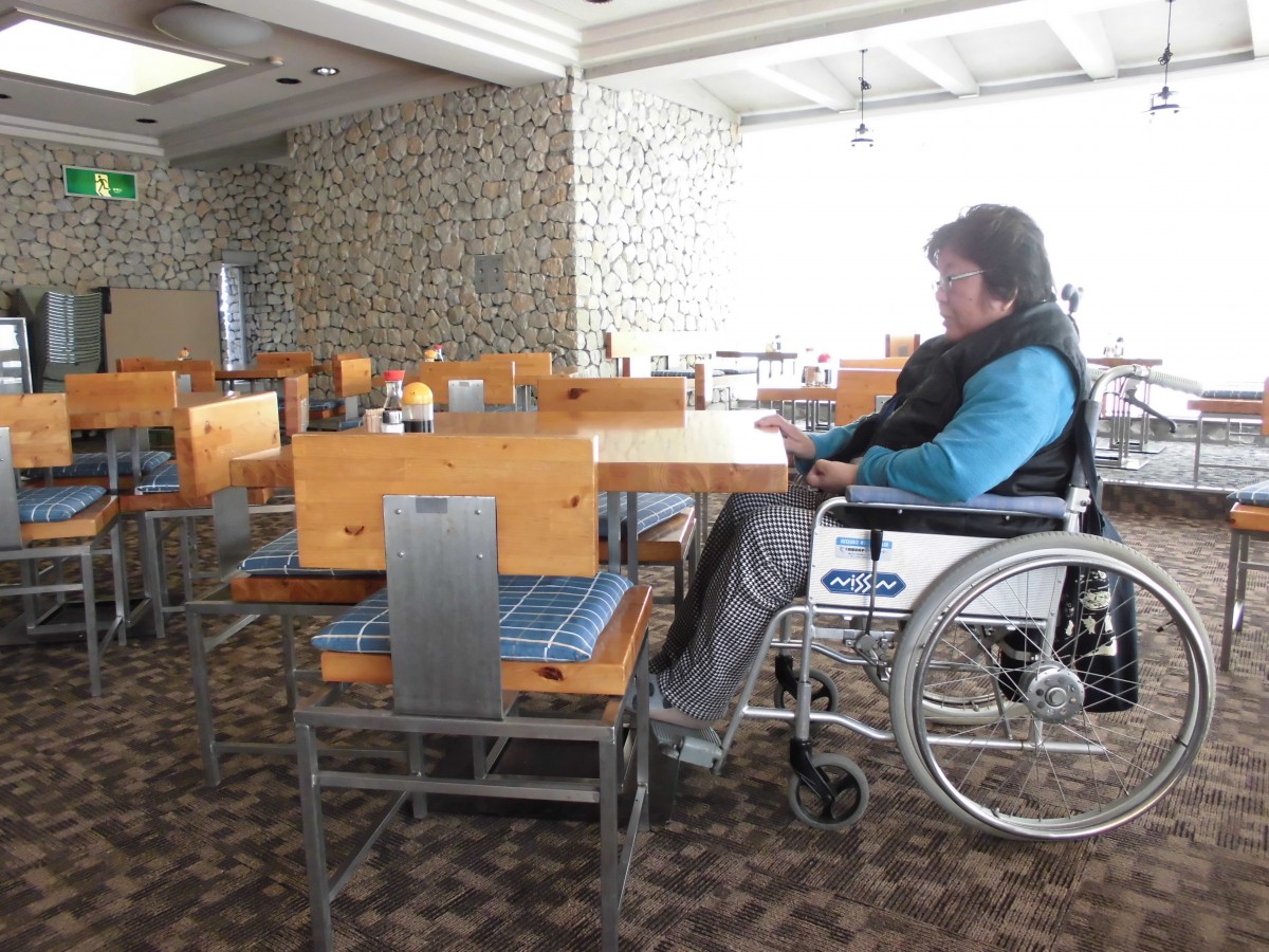 食堂の入口 簡易スロープあり