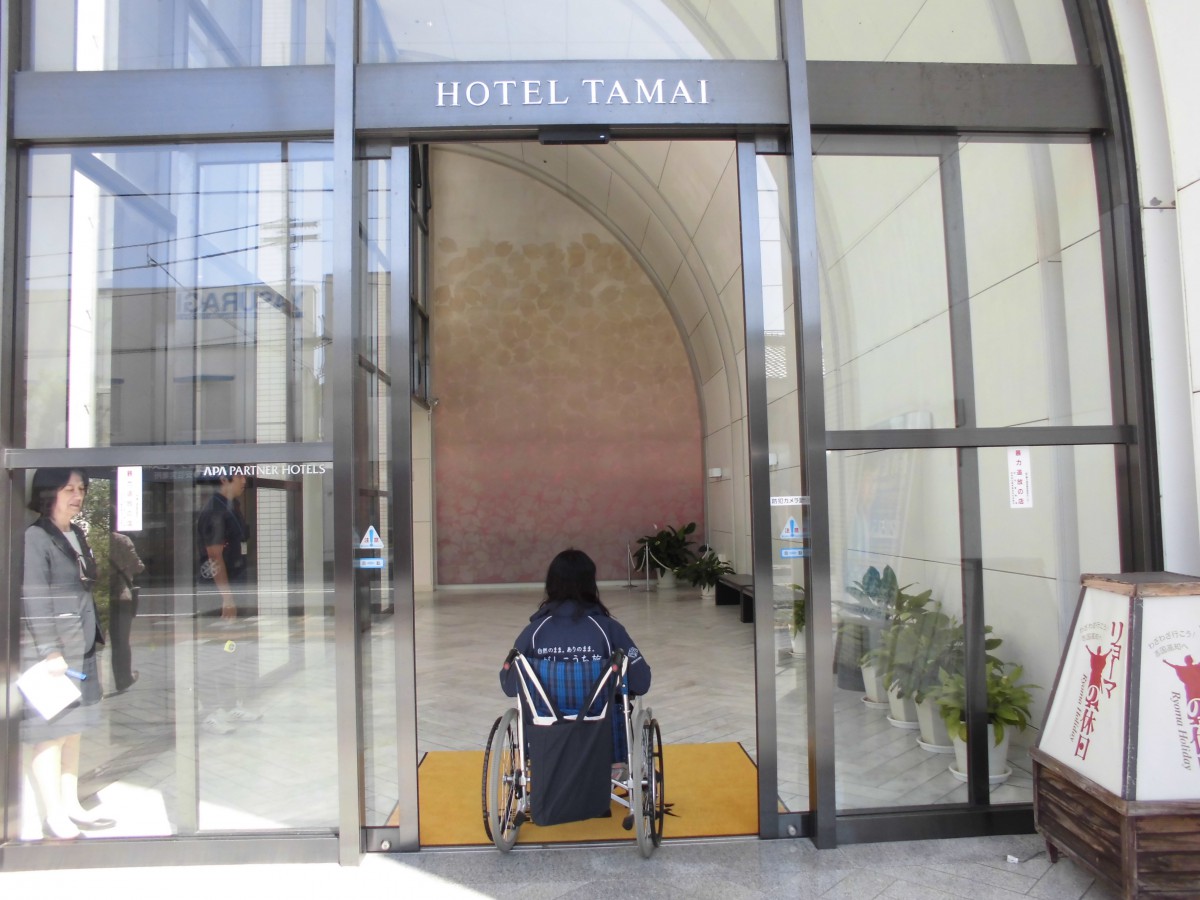 1階 南側正面入口 事前連絡をすればフロントスタッフが迎えに来てくれる