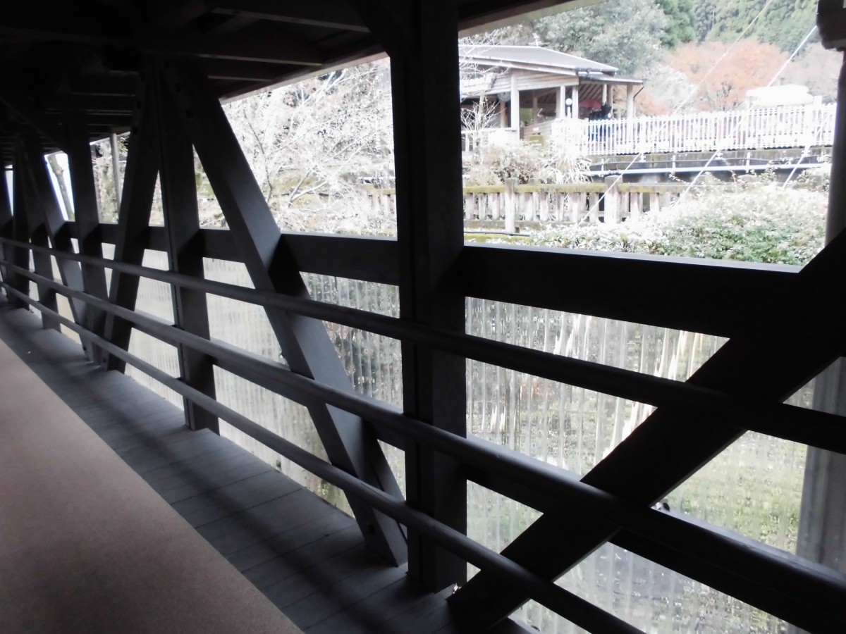 本館から別館への通路 森林鉄道馬路温泉前駅の景色を楽しめる
