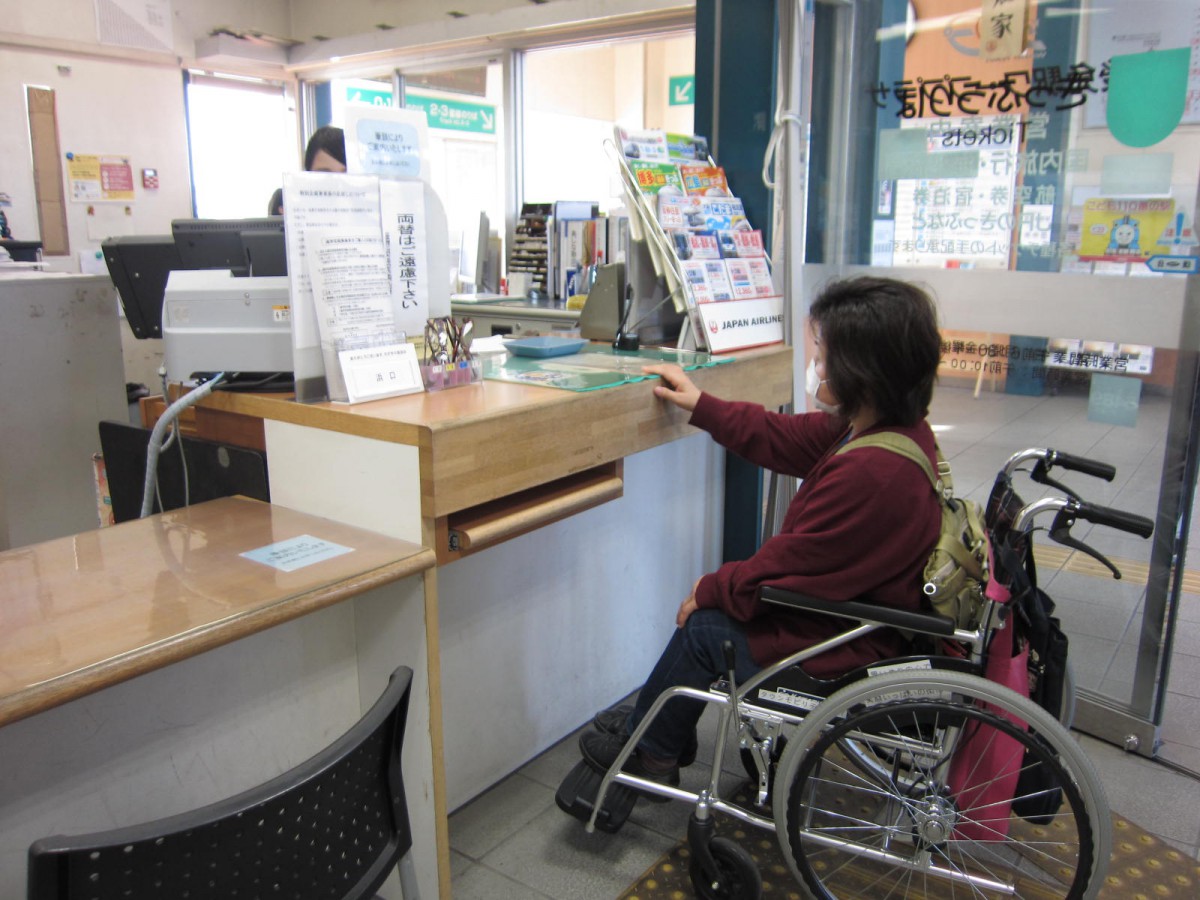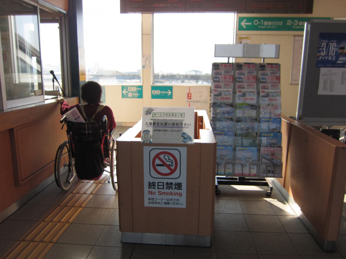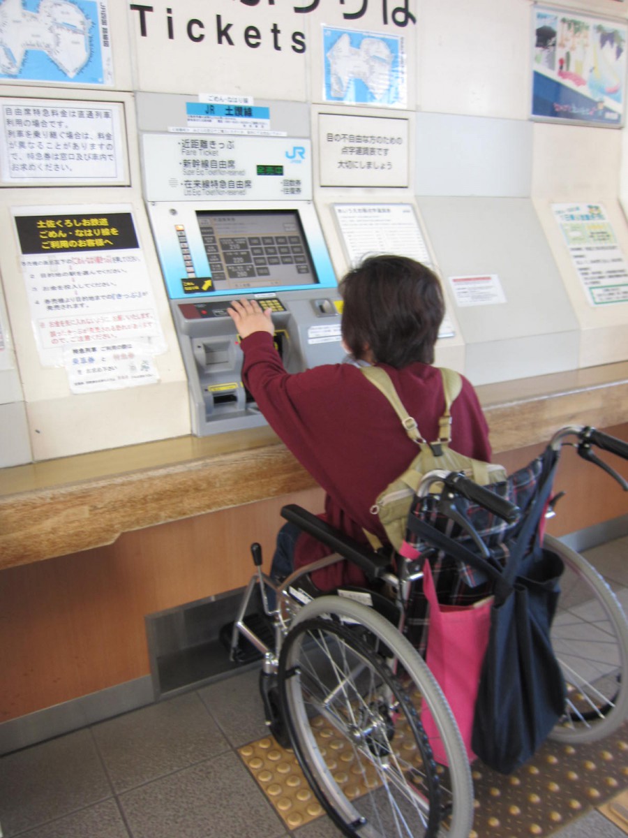 改札口前 券売機 足元に車いすの前輪が入るスペースがあり近づくことができる(JR共通の仕様)