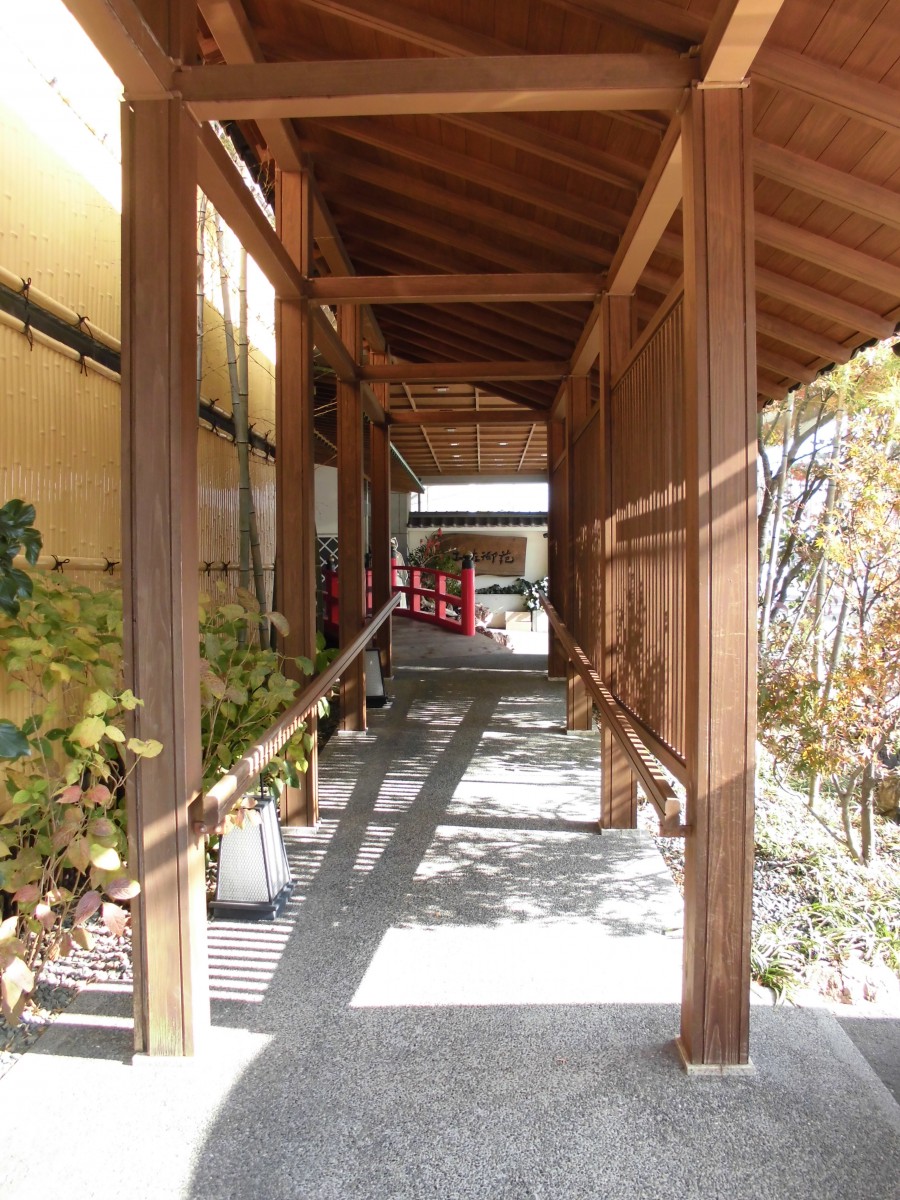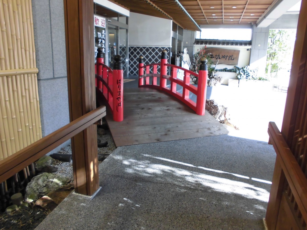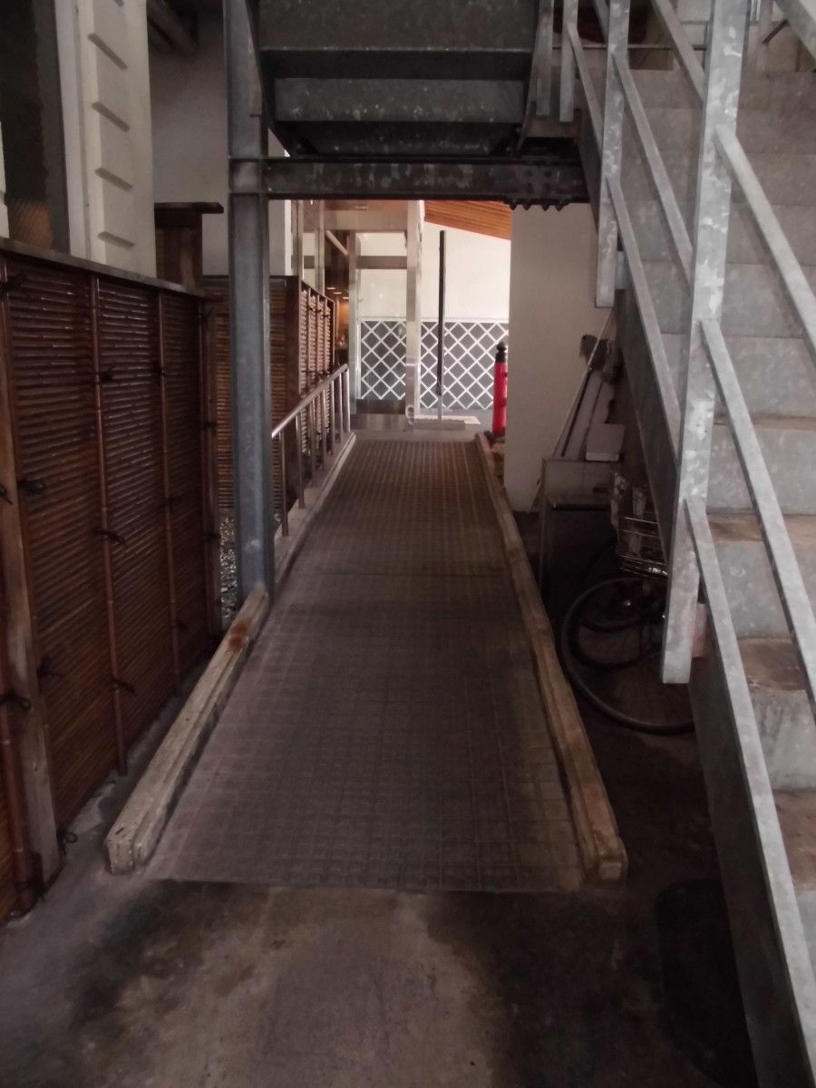 もうひとつの玄関への経路 スロープの先にはりまや橋のレプリカがある