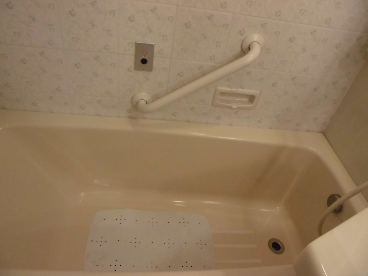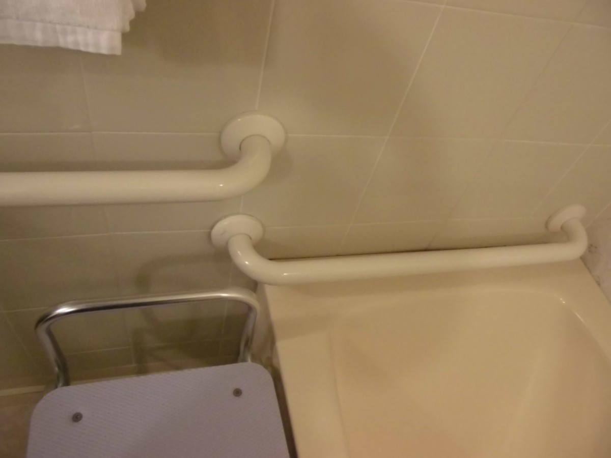 バリアフリールーム(658号室) 浴槽に手すりと滑り止めマットがある