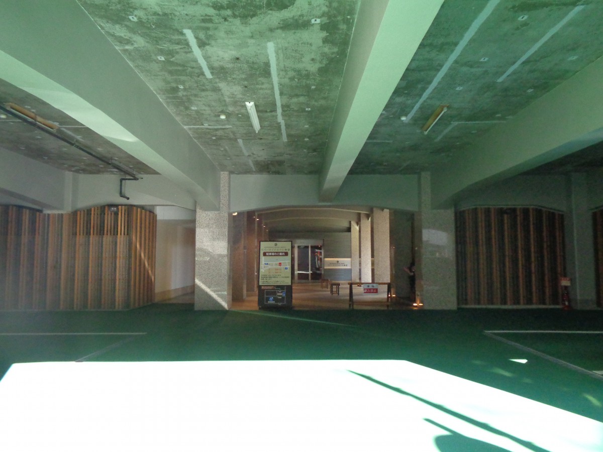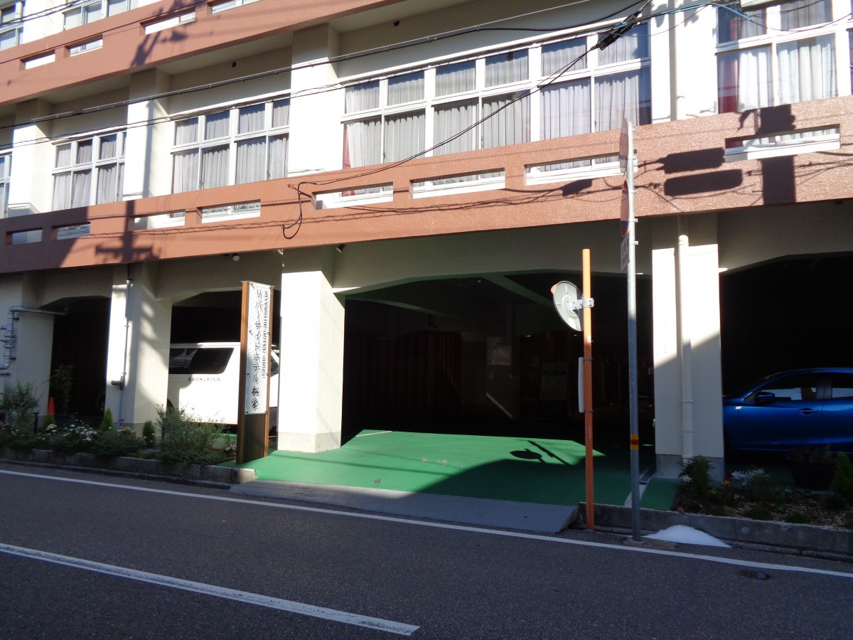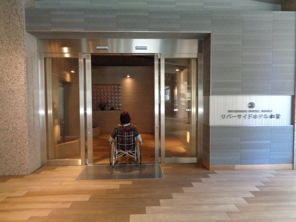 第一駐車場の障害者専用駐車スペースから南側入口までは、経路に段差がない