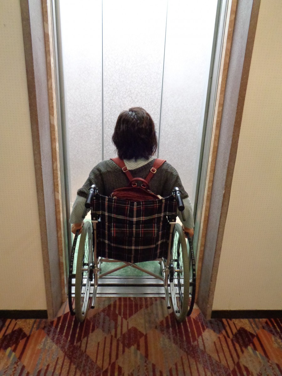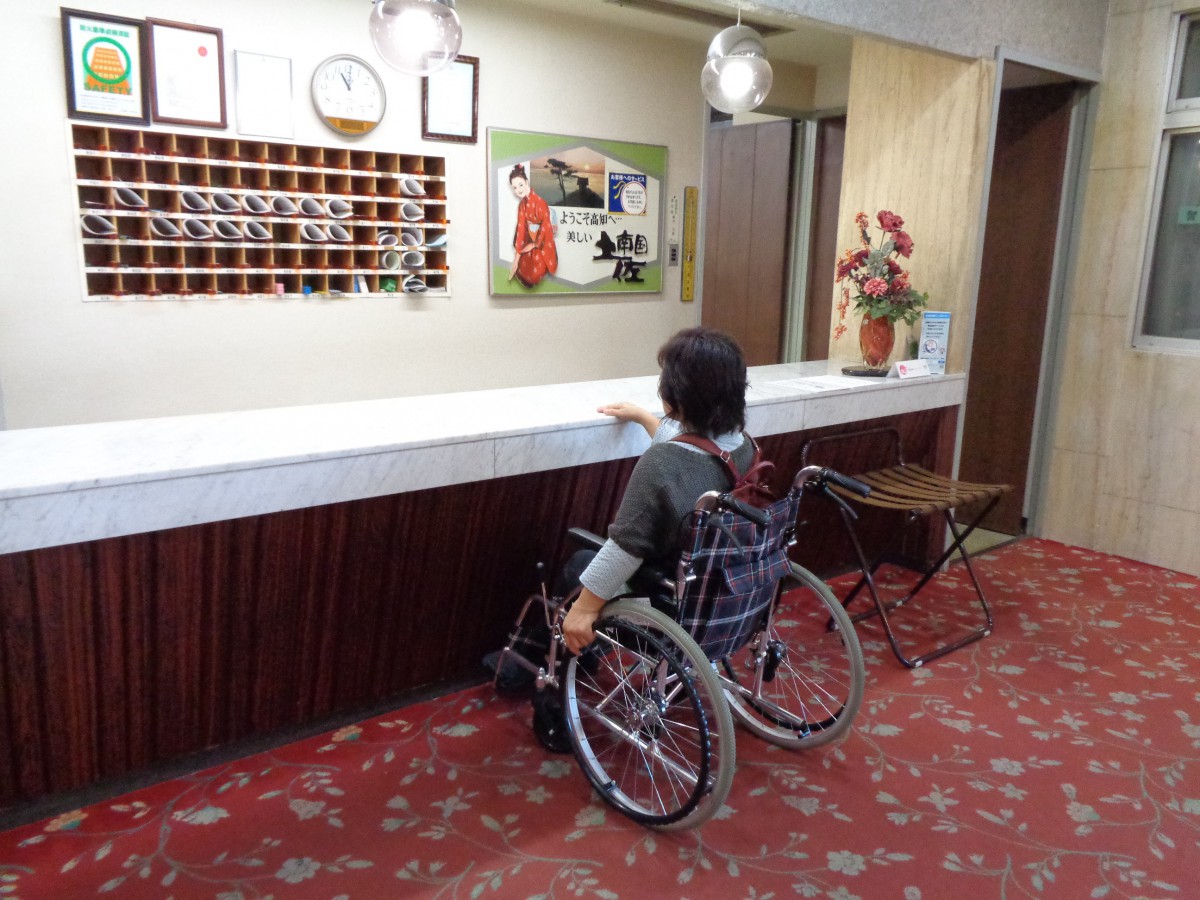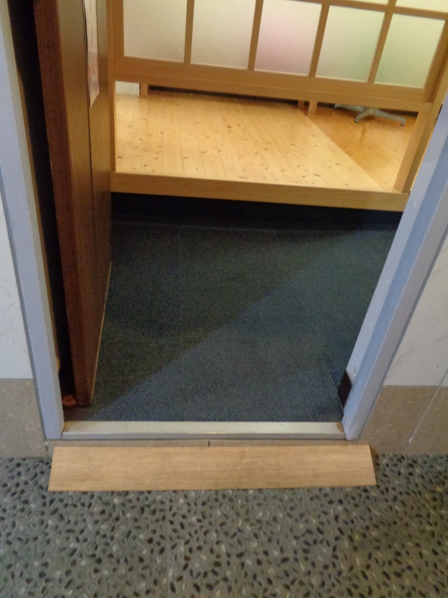 第一駐車場の障害者専用駐車スペースから南側入口までは、経路に段差がない