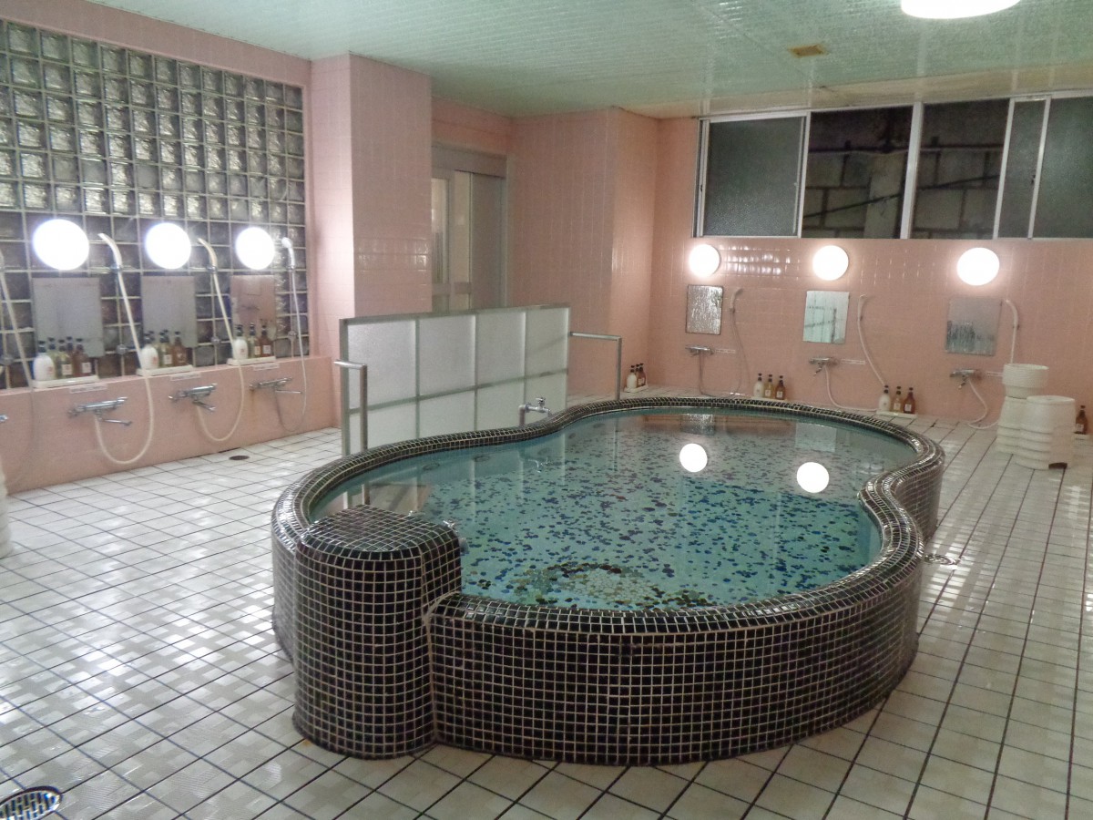 大浴場(女湯) 浴槽がタイル貼り、ひょうたん型でレトロかわいい