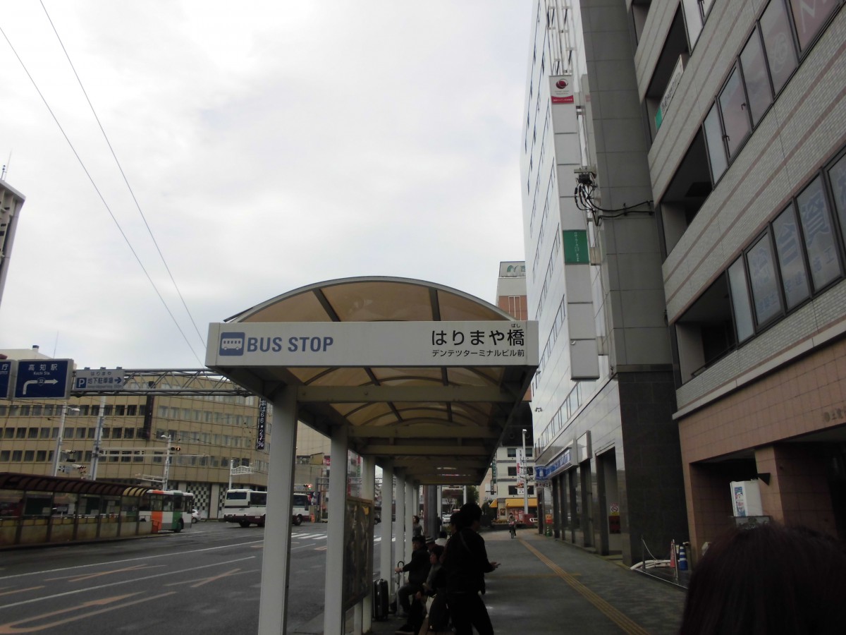 はりまや橋デンテツターミナル前停留所の様子 屋根があります