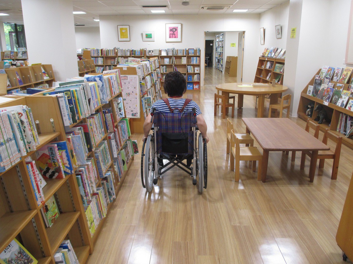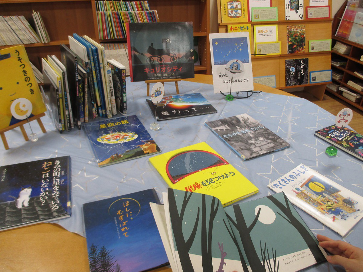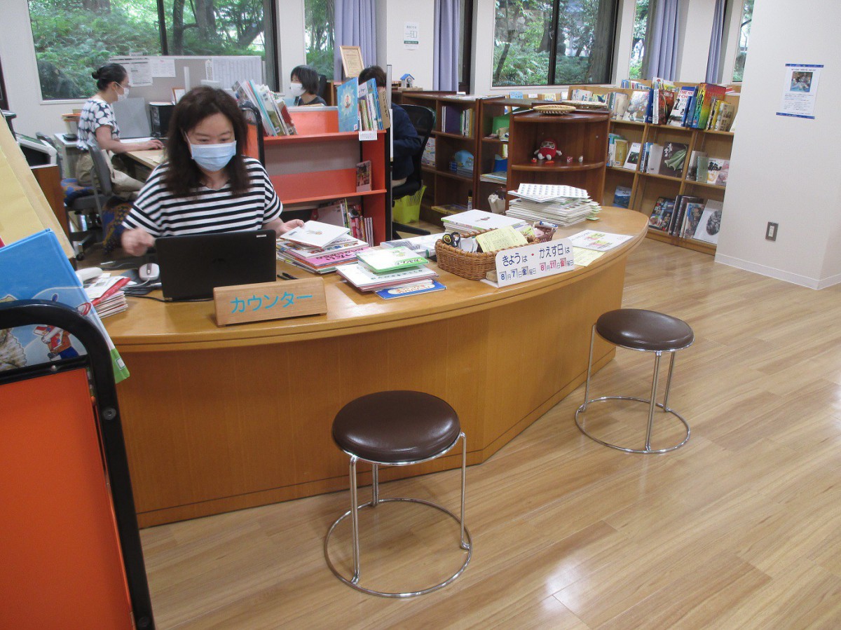 あとりえほんのコーナー こどもの図書館の自主企画展のほか、月によって、アーティスト(イラストレーターやフェルト作家さん等、様々な作家の方々)の個展も行う予定