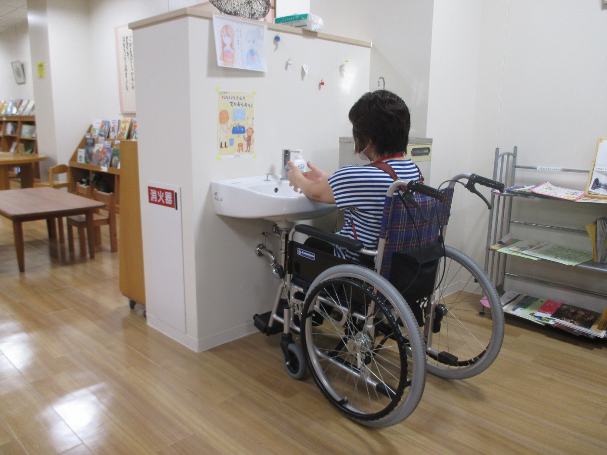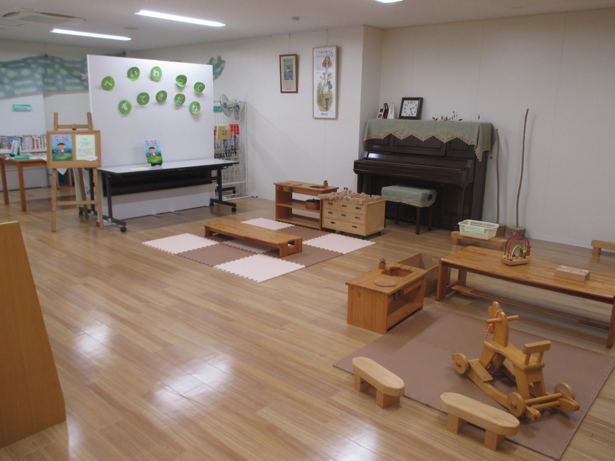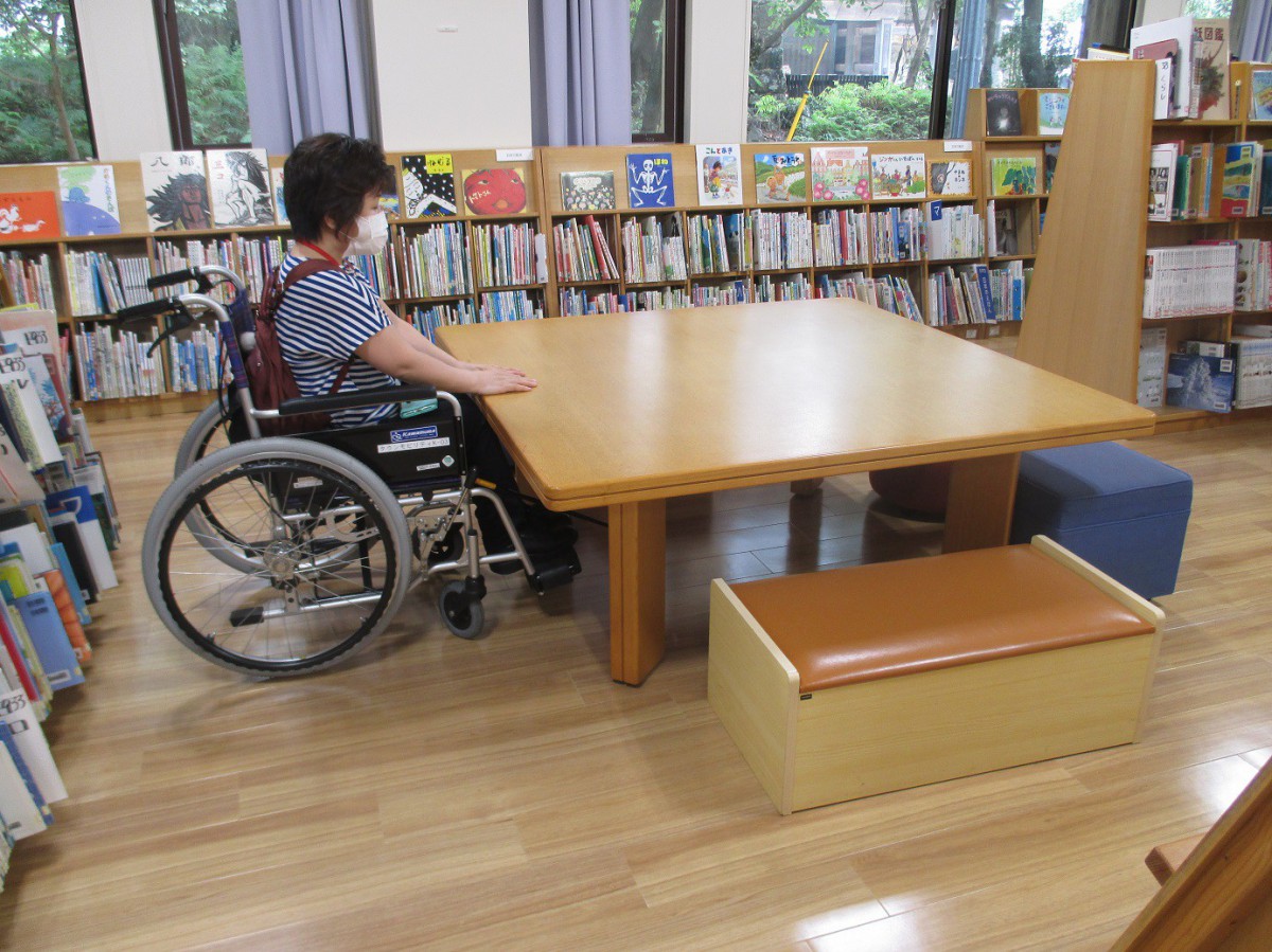 フリースペース 奥の「あとりえほん」コーナーとつなげて広いスペースにすることも可能