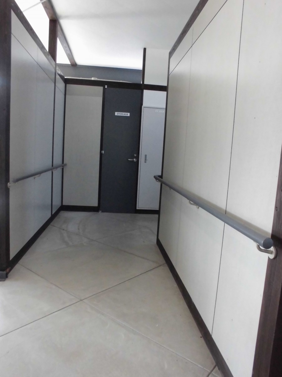 管理棟トイレまでの通路 両側に手すりあり
