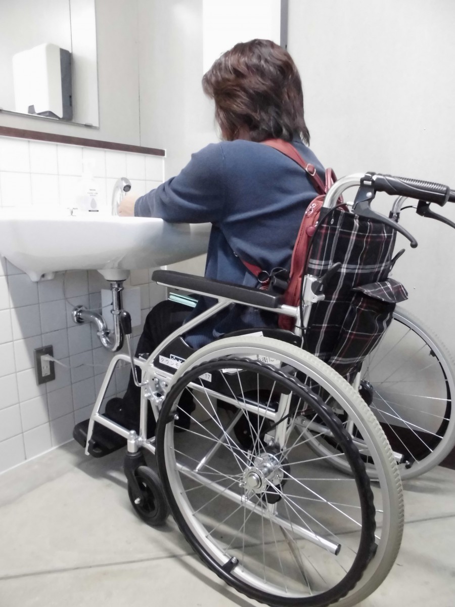 管理棟多目的トイレの洗面台 車いすでも使いやすい