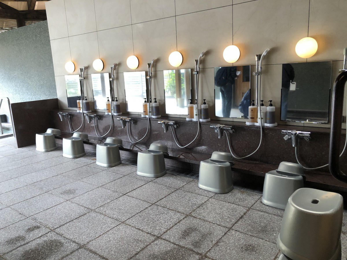 大浴場(女湯)洗い場入口幅88センチ 段差5センチ
