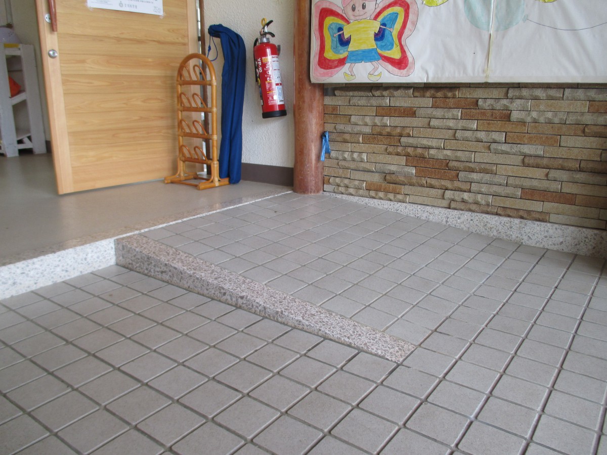 本館 入口内 段差あり スロープあり 段差高さ10センチ スロープ幅100センチ 長さ110センチ 傾度5度