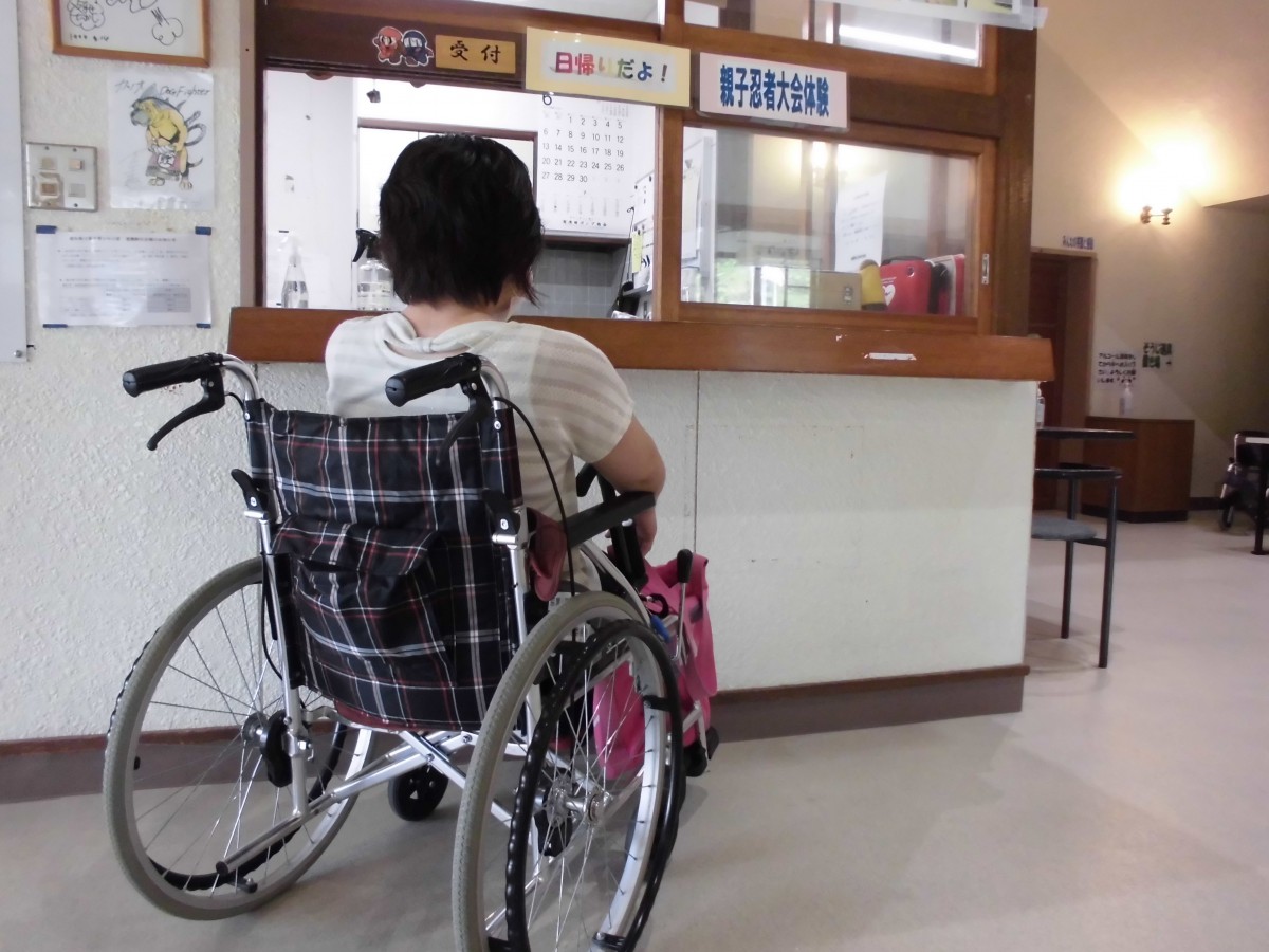 本館 受付 高さ 上94センチ 下84センチ 事務室内にAEDあり