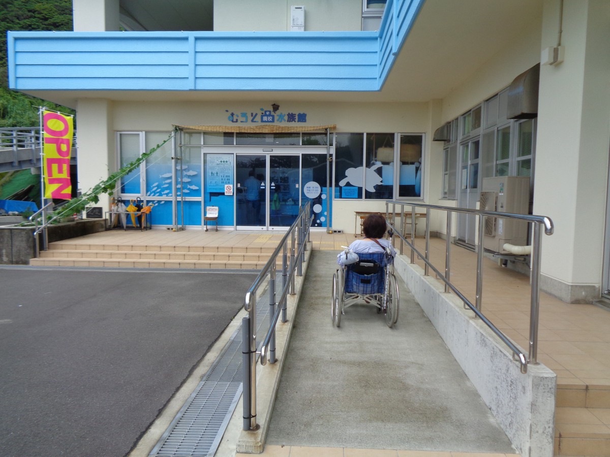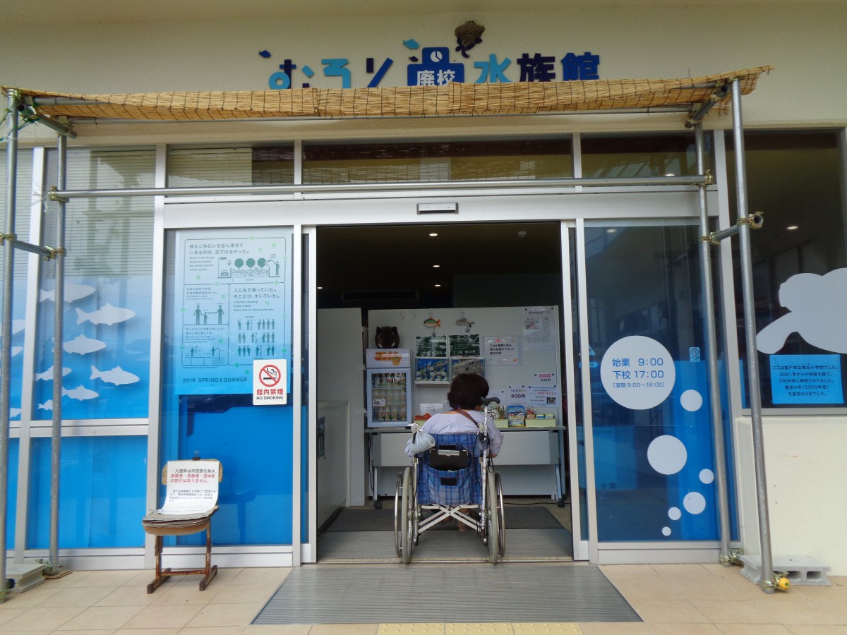 屋外大水槽の入口 通常は施錠されているため、車いす利用者は係の方に声をかける