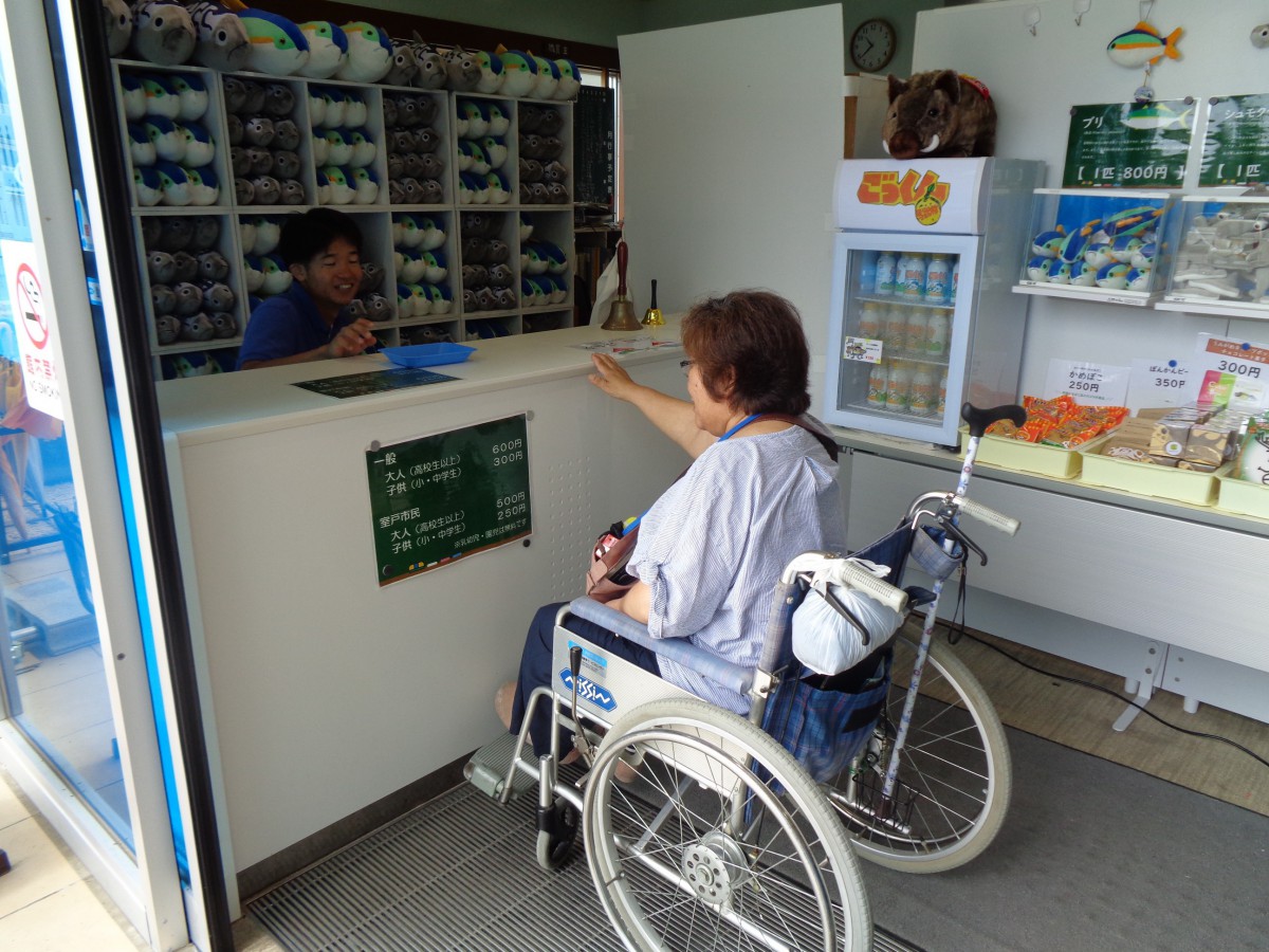 受付 くじ引きの受付や売店のレジなど総合受付 車いすで大水槽へ行くときはこちらで係の方に声をかけると専用入口の鍵を開けてもらえる