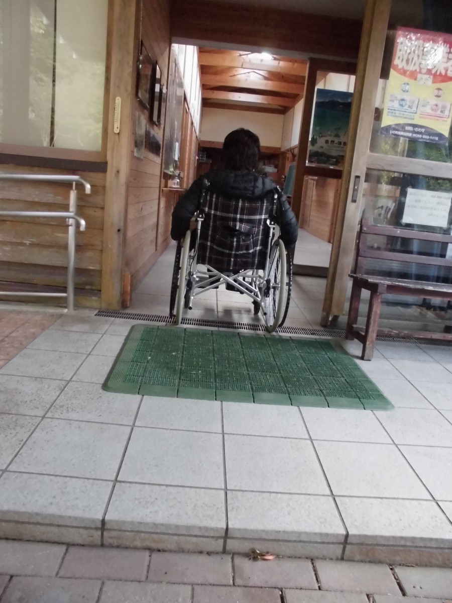 ロッジ「めじろ」 バリアフリーロッジ 開き戸 入口幅90センチ程度 段差あり高さ2センチ 上がりかまち高さ14センチ