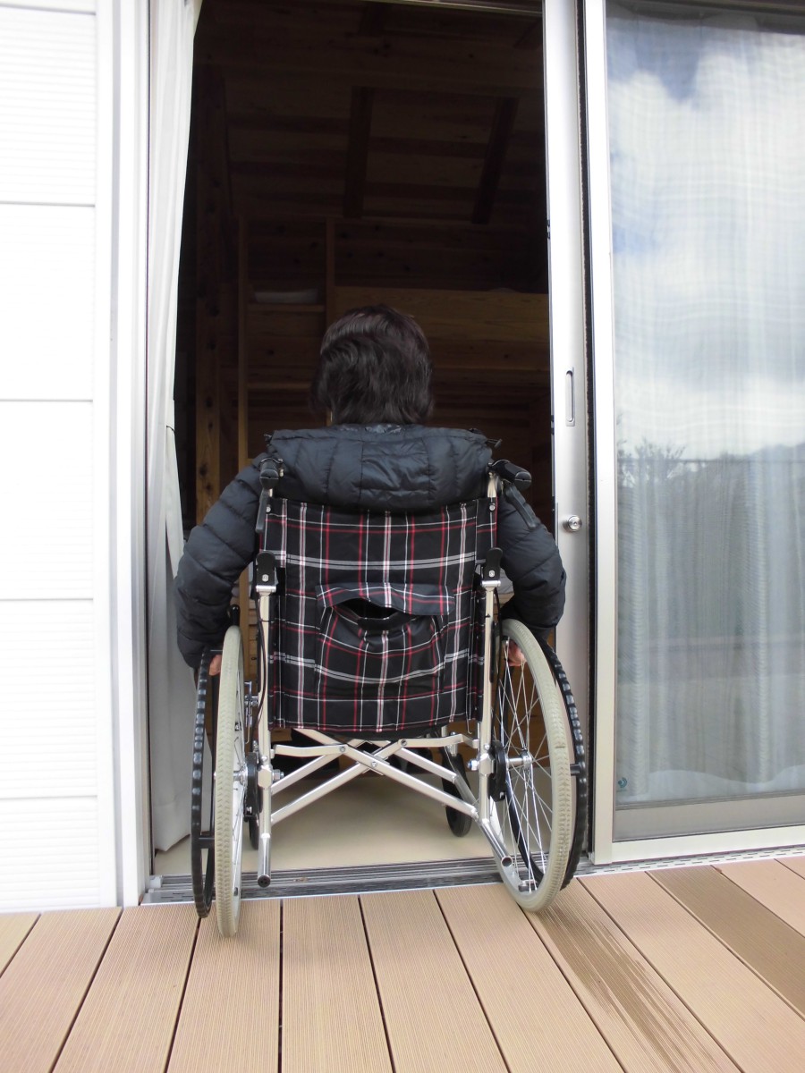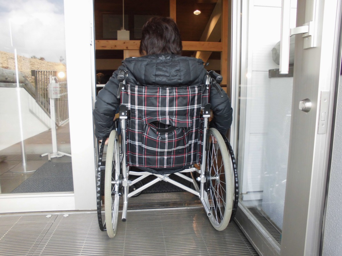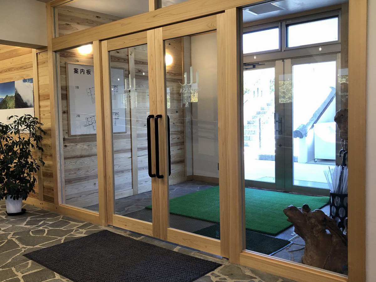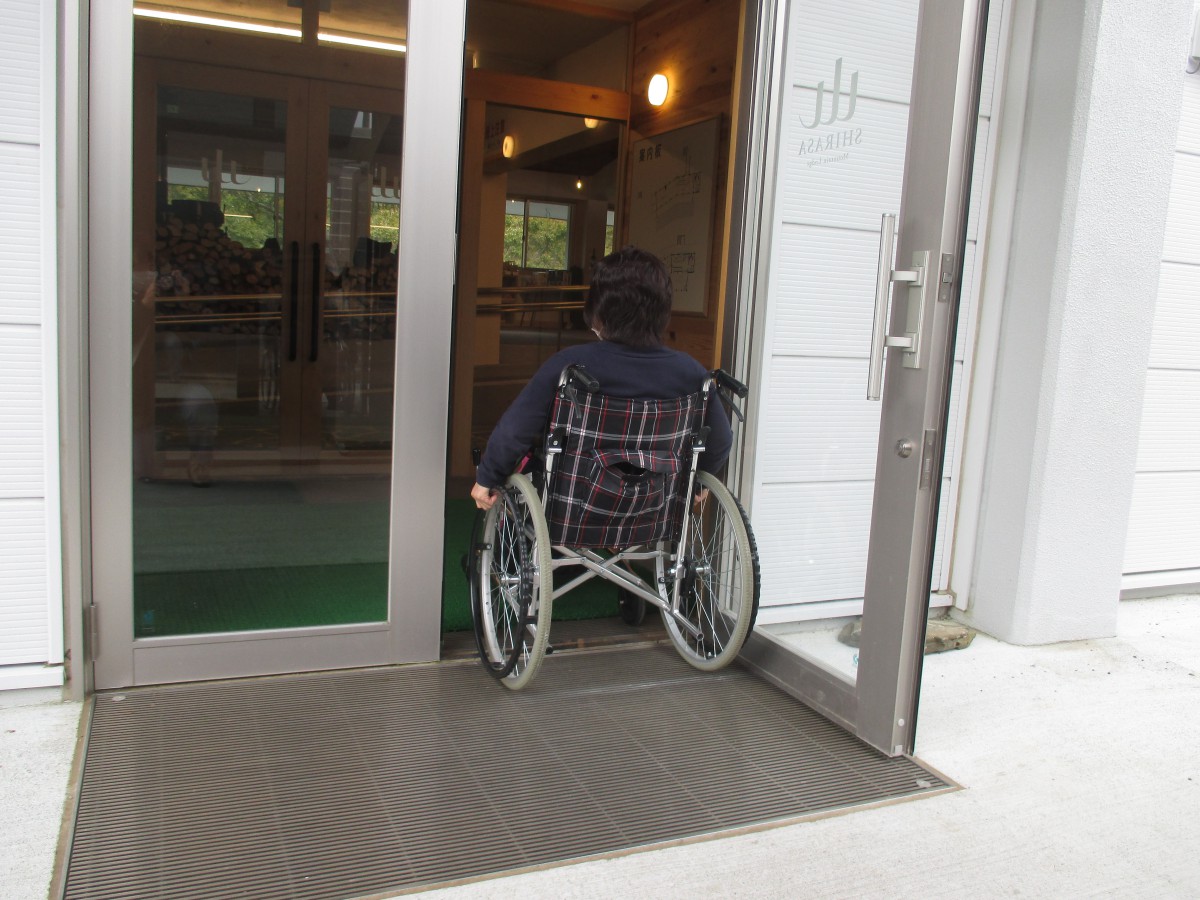 ロッジ6バリアフリールーム入口 スライド戸 入口幅85センチ 段差なし