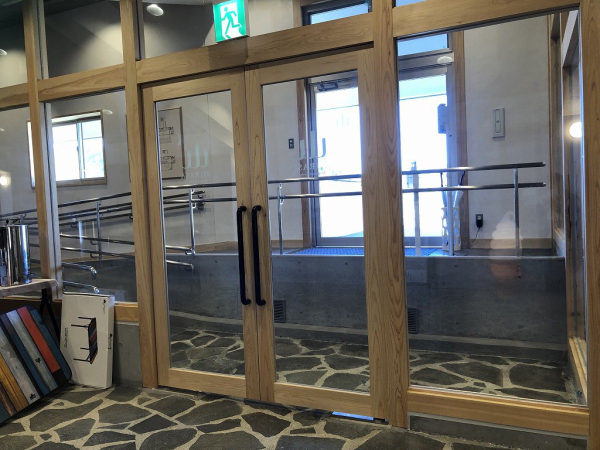 2階ロビー前入口 開き戸 入口幅片側71センチ 両開き時142センチ 段差なし