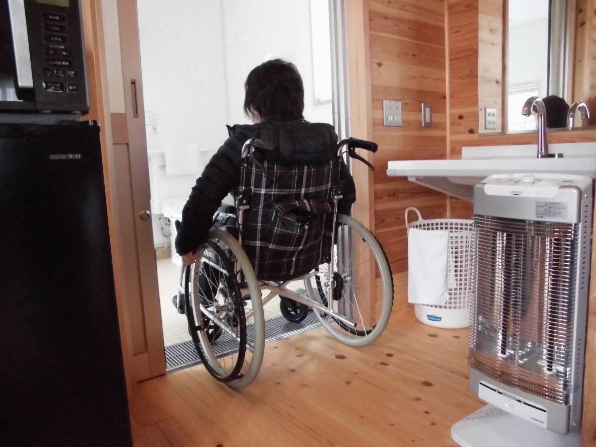 ロッジ6バリアフリールーム トイレ・浴室入口 スライド戸 入口幅80センチ 段差なし