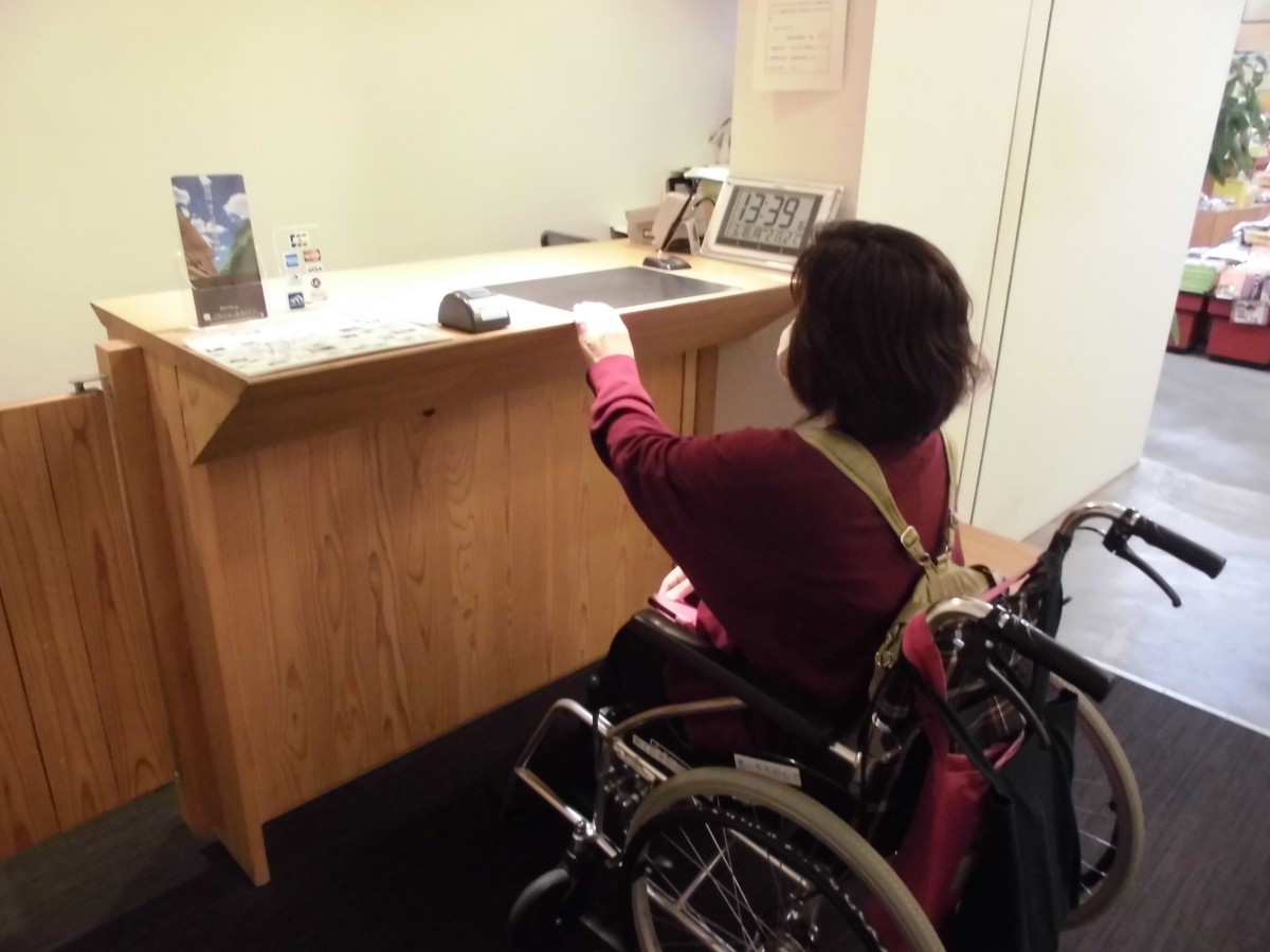 受付 カウンター 高さ98センチ 荷物置き台 高さ35センチ