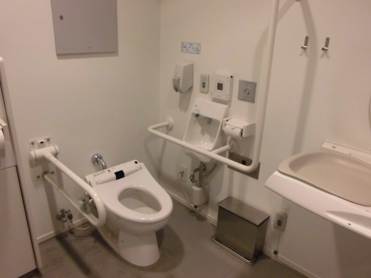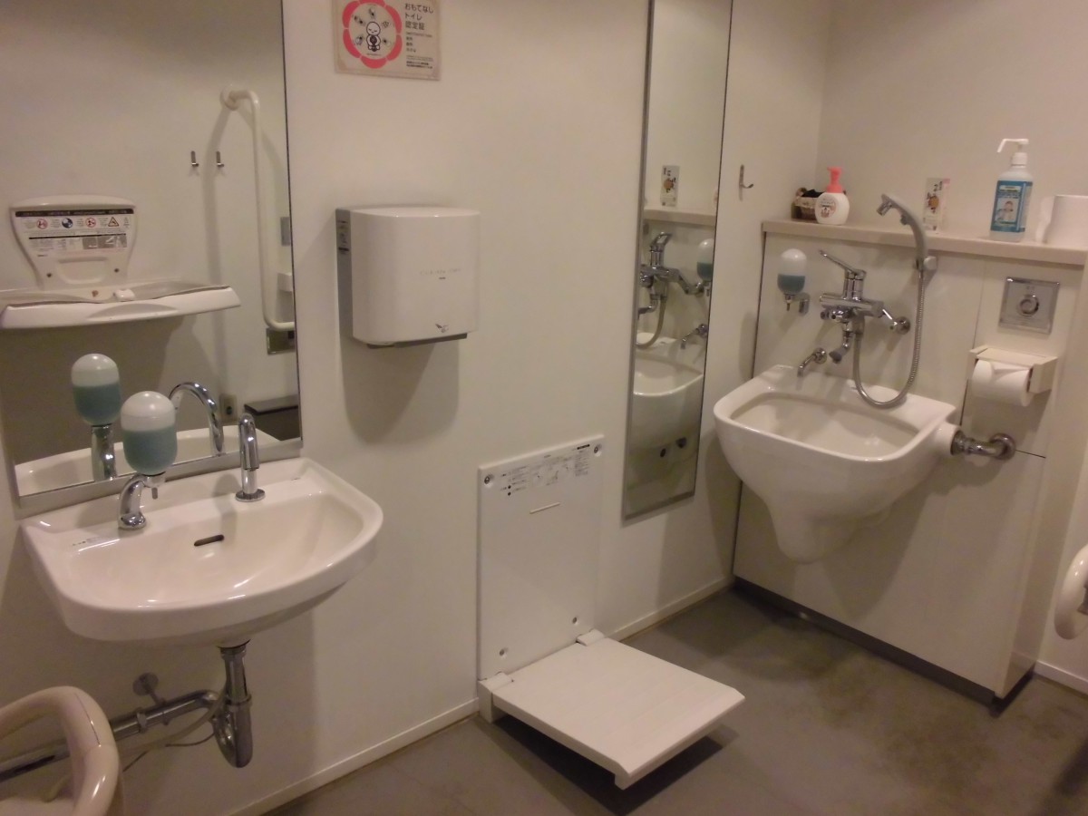 1階 まちの駅ゆすはら内 多目的トイレ オストメイト、フィッティングボードあり