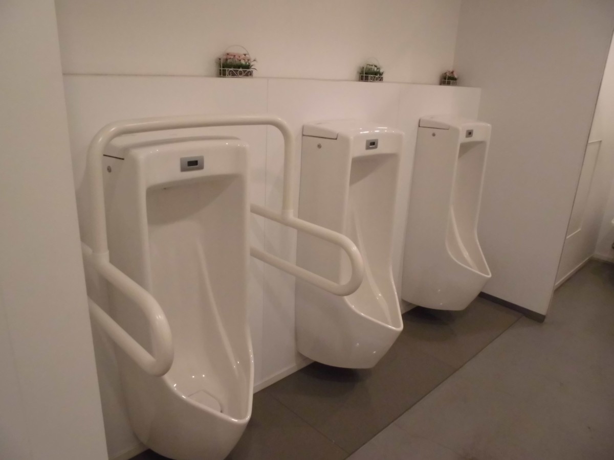 1階 まちの駅ゆすはら内 一般男性用トイレ 小便器 手すりあり1器 手すりなし2器