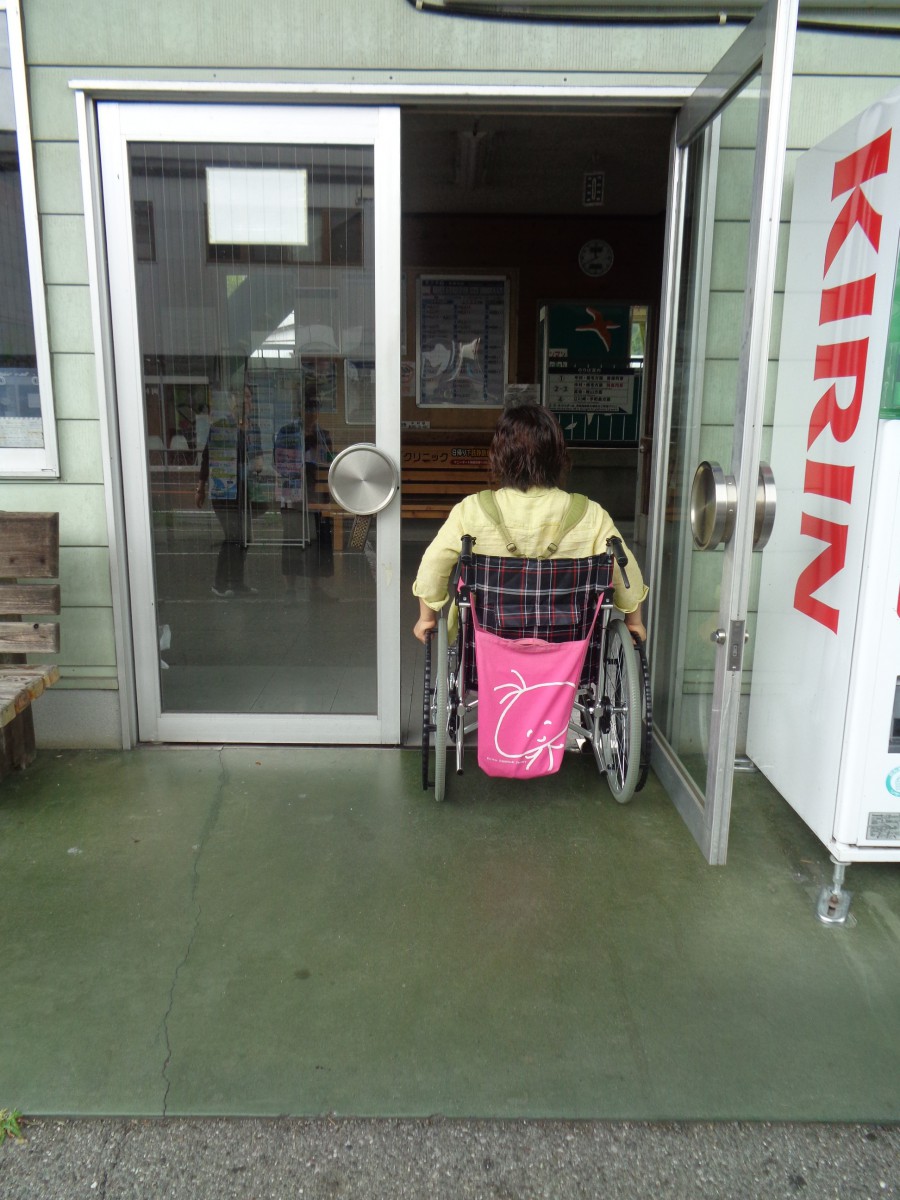 駅舎入口前に傾斜あり 傾度6度 開き戸 入口幅80センチ 段差なし