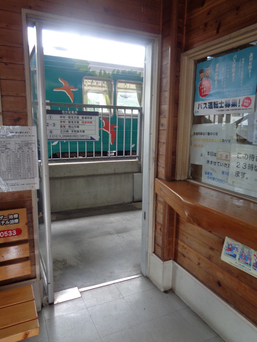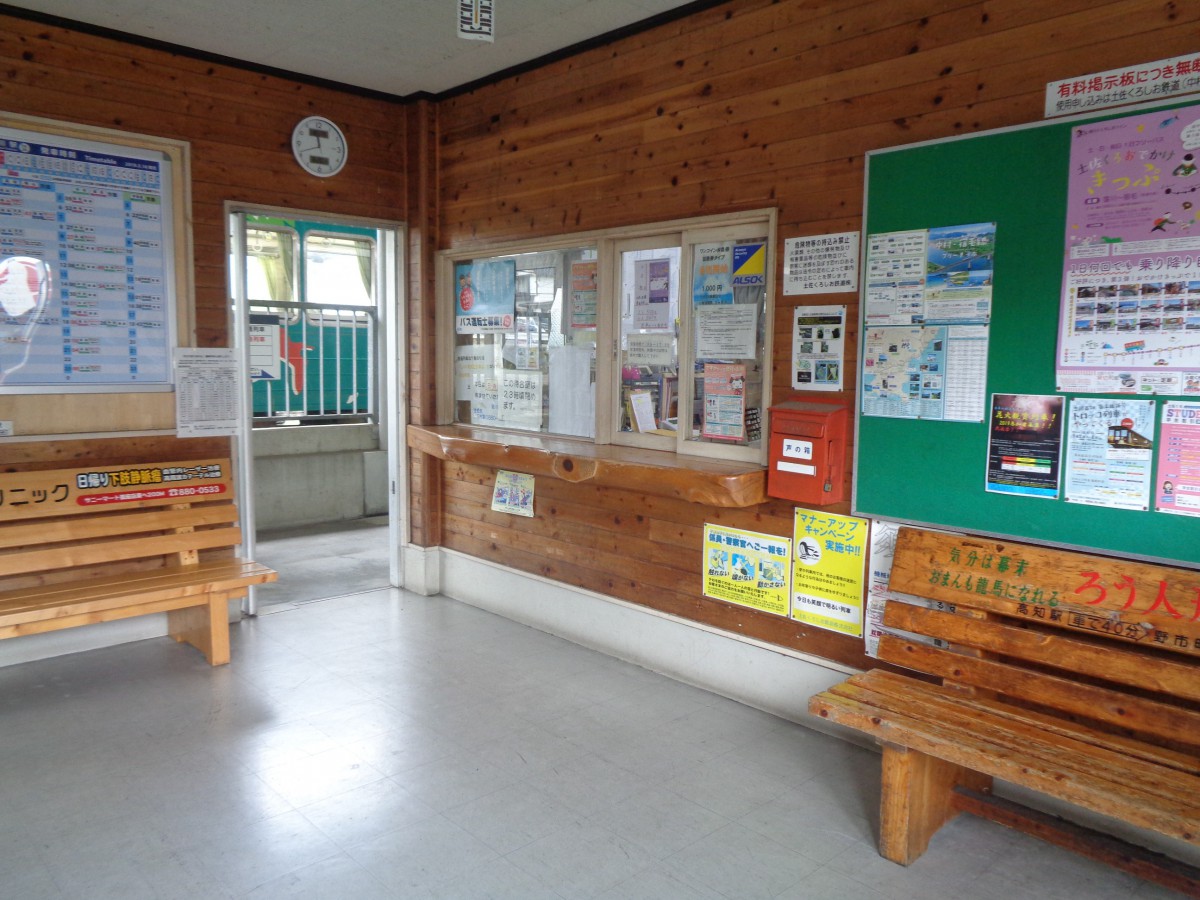 待合室内に改札、券売機はない 切符は列車内または四万十交通事務所で購入する