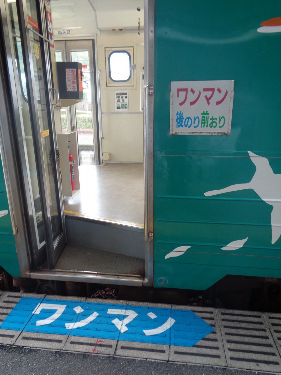 列車乗降口 ワンマン列車停車位置がわかりやすく色づけされている