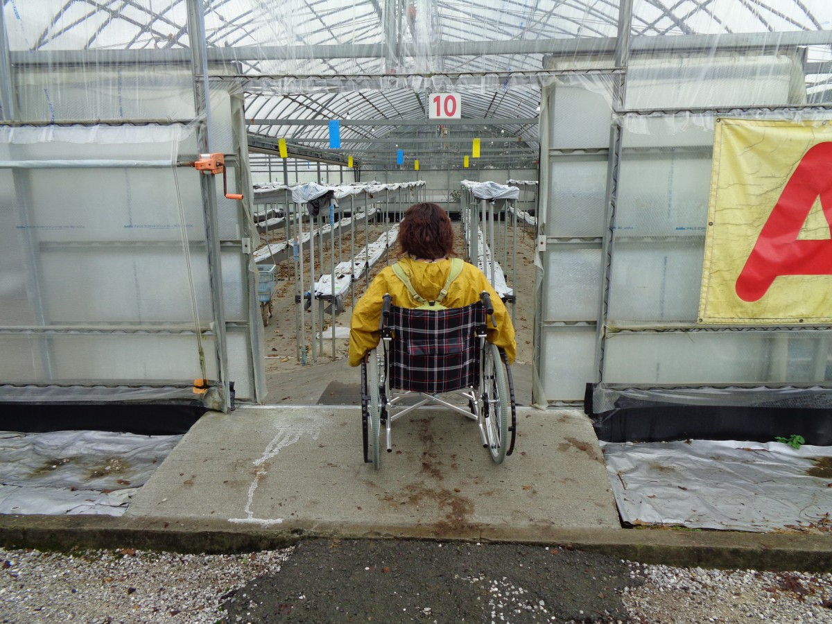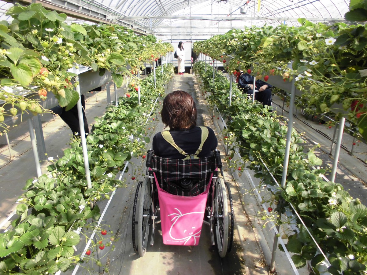いちごハウス 高設栽培のバリアフリー仕様のハウス 車いすで利用出来る