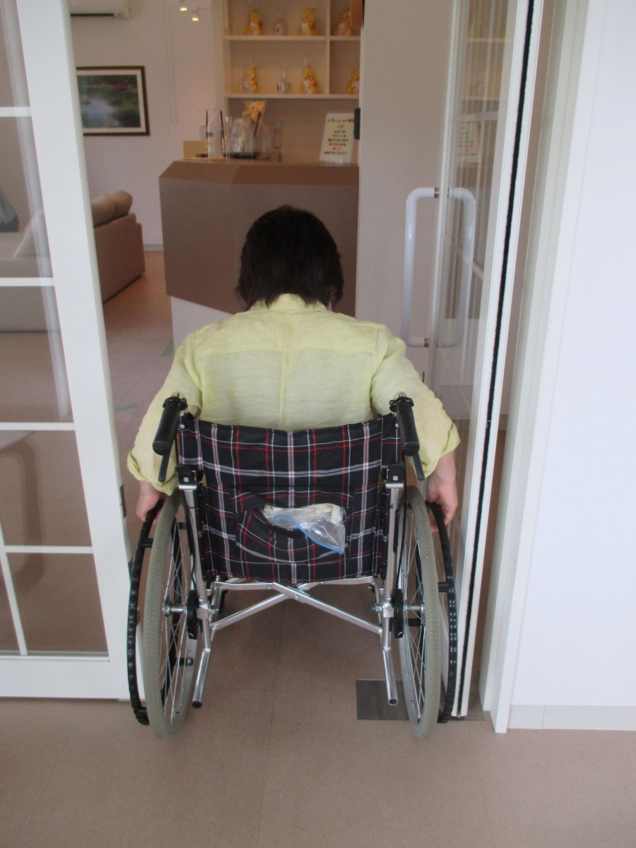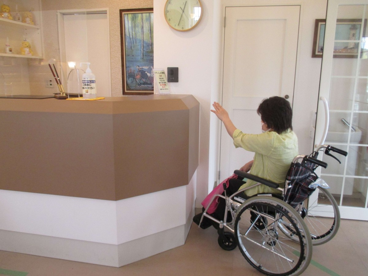 1階フロント カウンター高さ113センチ インターフォン高さ125センチ 車いすでは、少し届かない