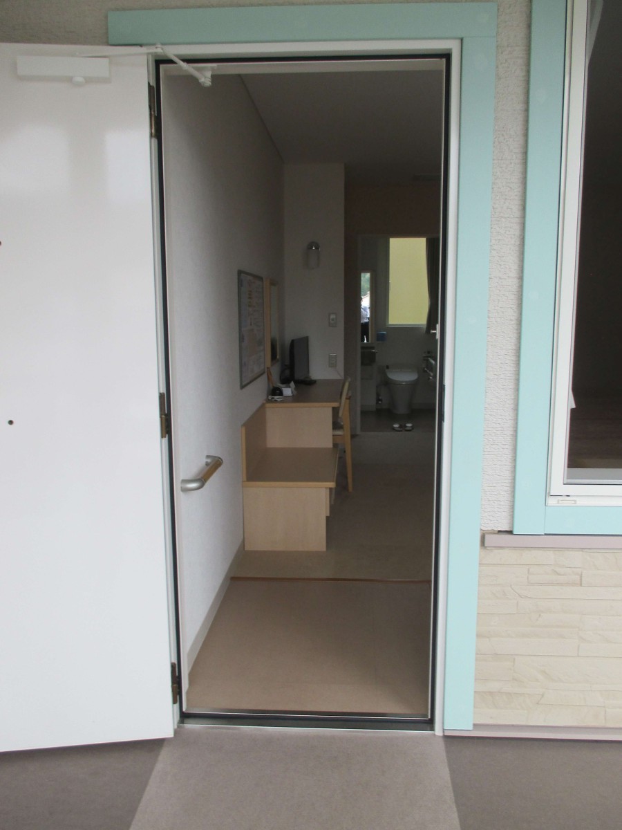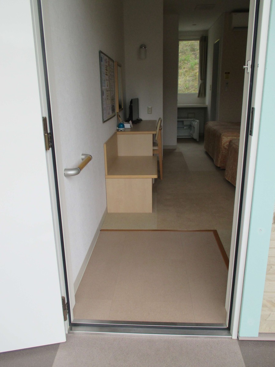 1階15号室レギュラールーム 開き戸 入口幅80センチ 段差3センチ 入って左側にI字の手すりあり