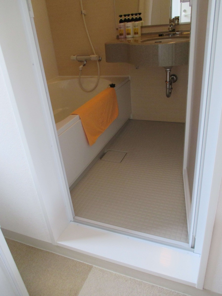 1階15号室レギュラールーム 洗面・浴室 開き戸 入口幅59センチ 段差10センチ