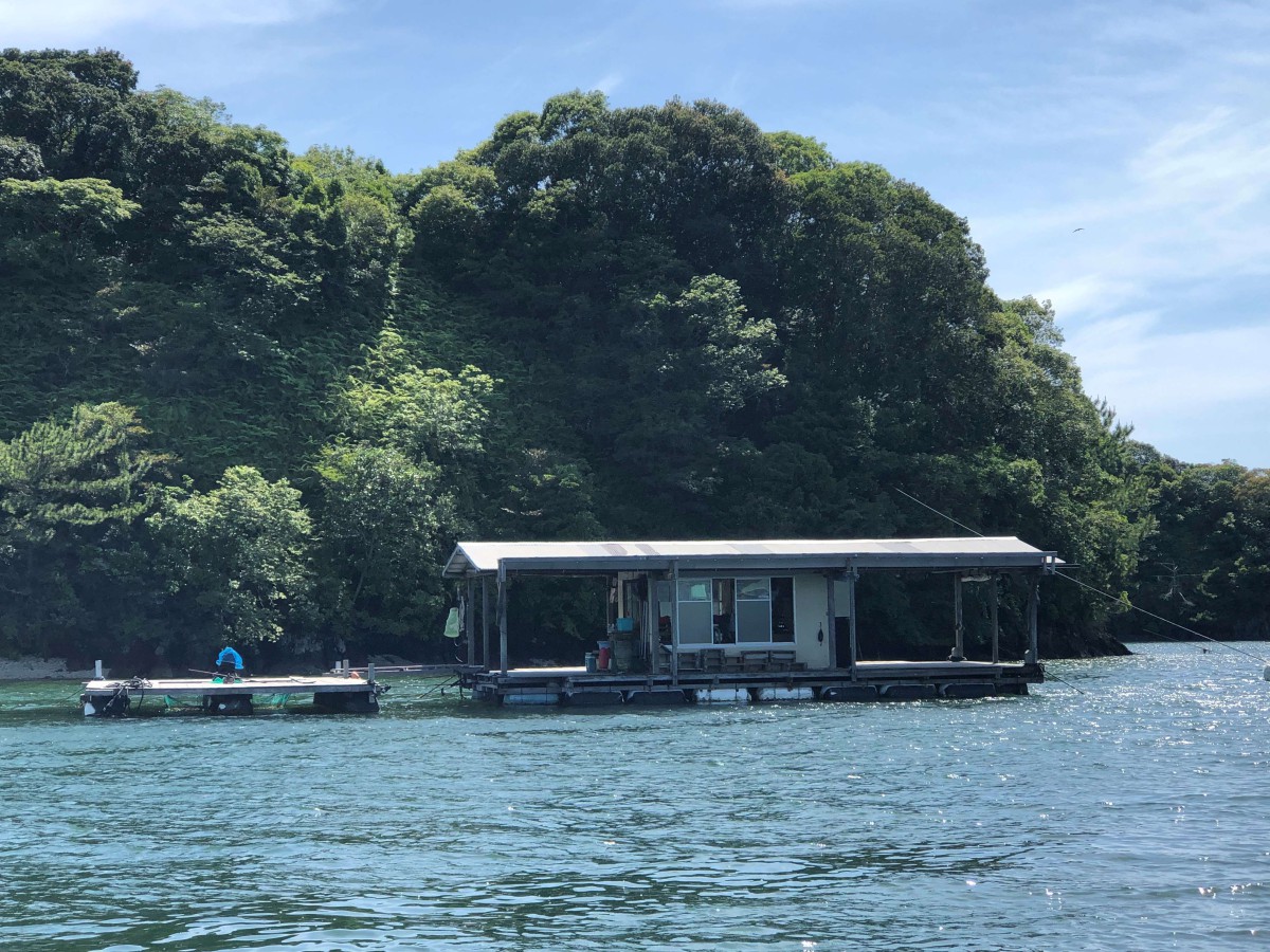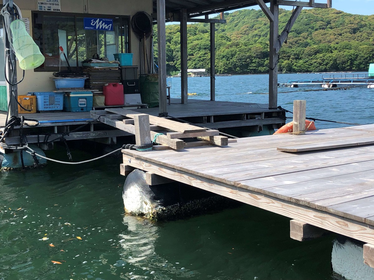 釣りイカダ 橋で連結していて別のイカダに移動も可 橋の幅は狭く手すりはないので、車いすや小さな子供は渡ることはできない