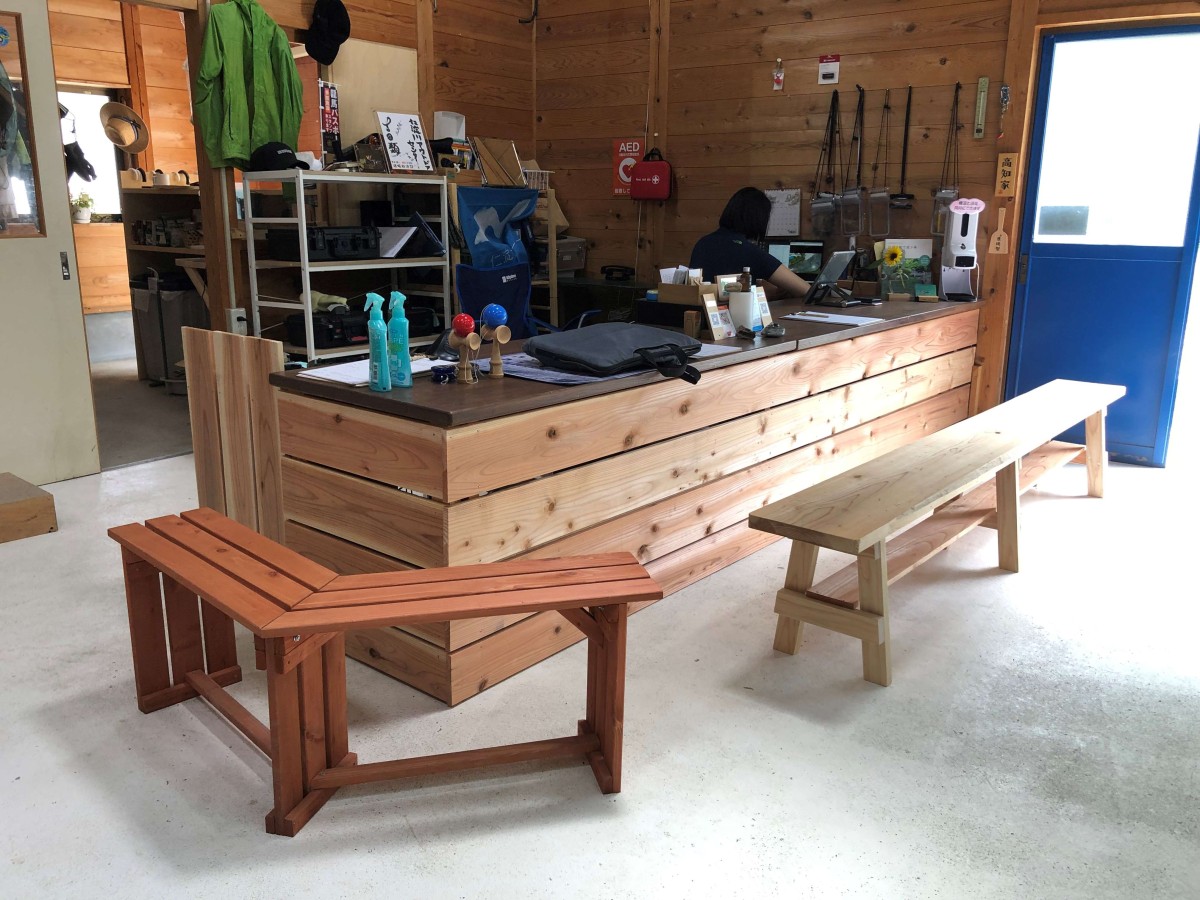 受付 カウンター 高さ68センチ ベンチ 高さ41センチ