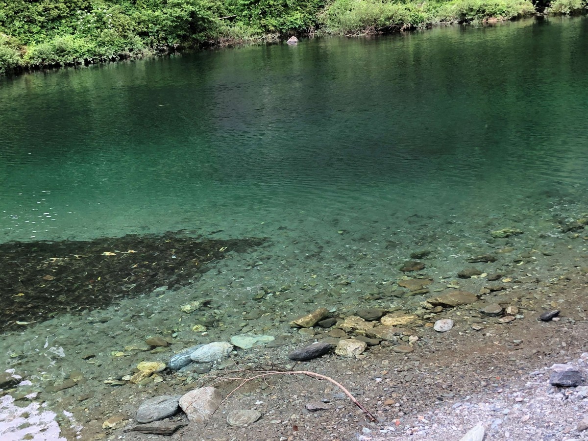 河原の様子 砂利の箇所で急勾配な箇所あり 傾度10度