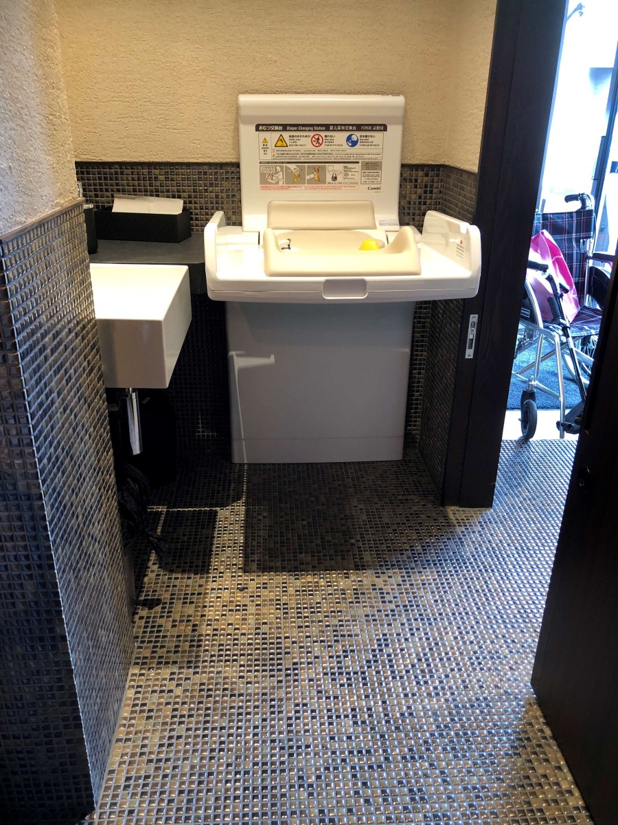 男女一般共用トイレ ベビーチェアあり、手すりなし