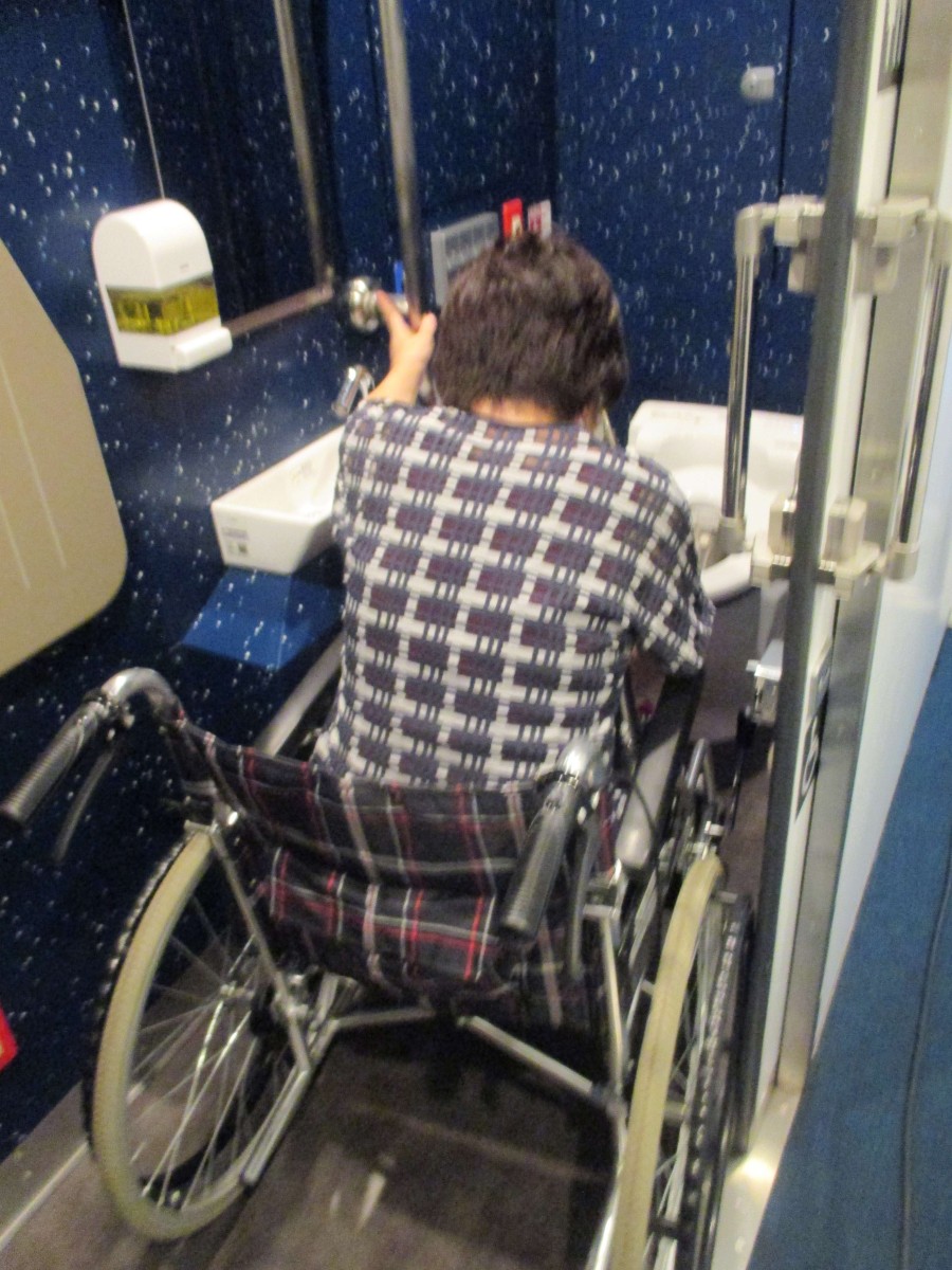 2号車ソラフネ 多目的トイレ 有効横幅が53センチのためスペースが狭く車いすの回転が厳しい