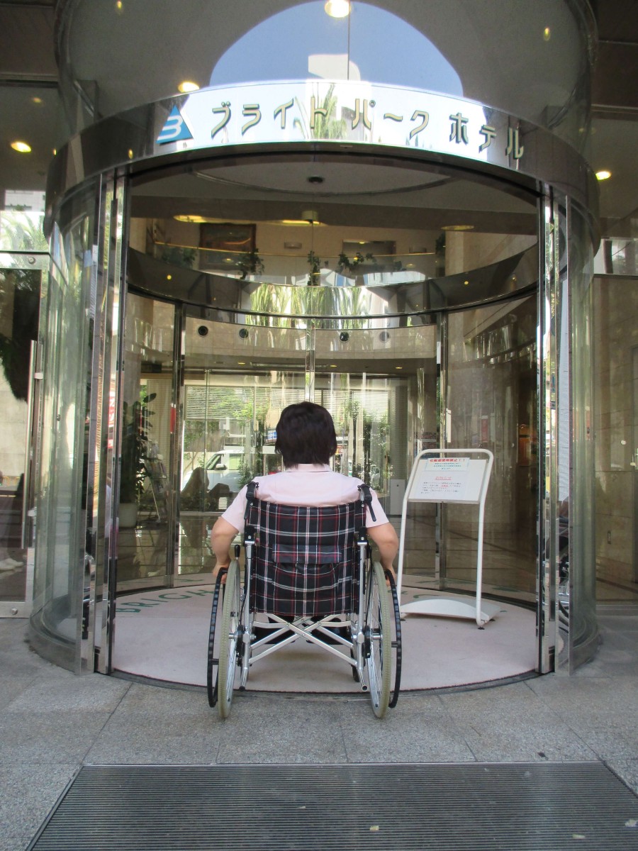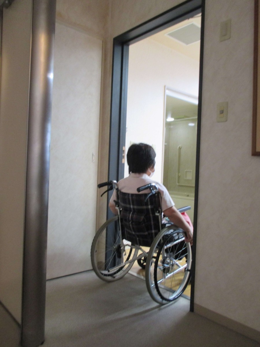 201号室 ハンディキャップルーム 浴室・洗面・トイレ共通入口 スライド戸 入口幅94センチ 段差なし シャワーチェアあり