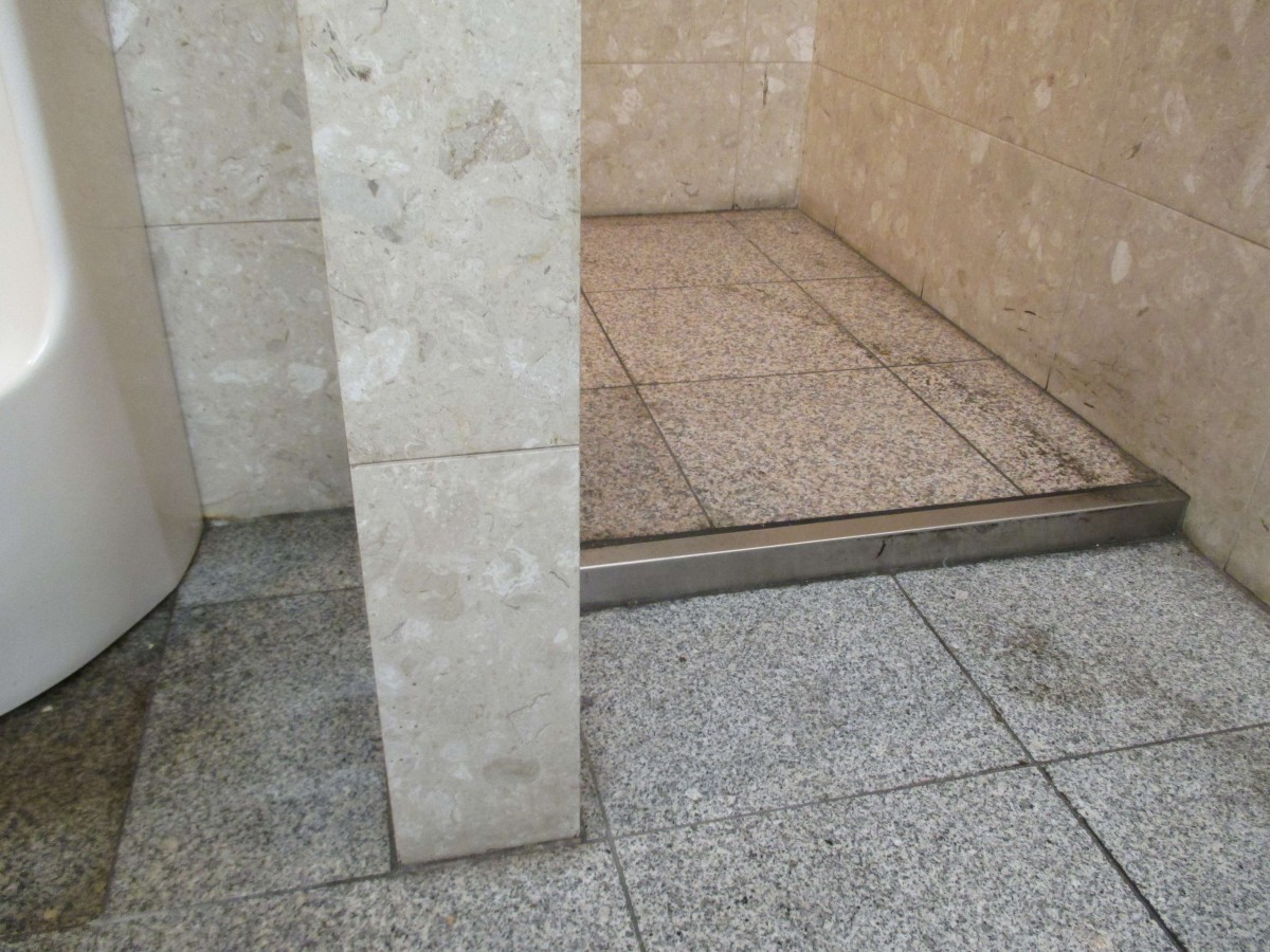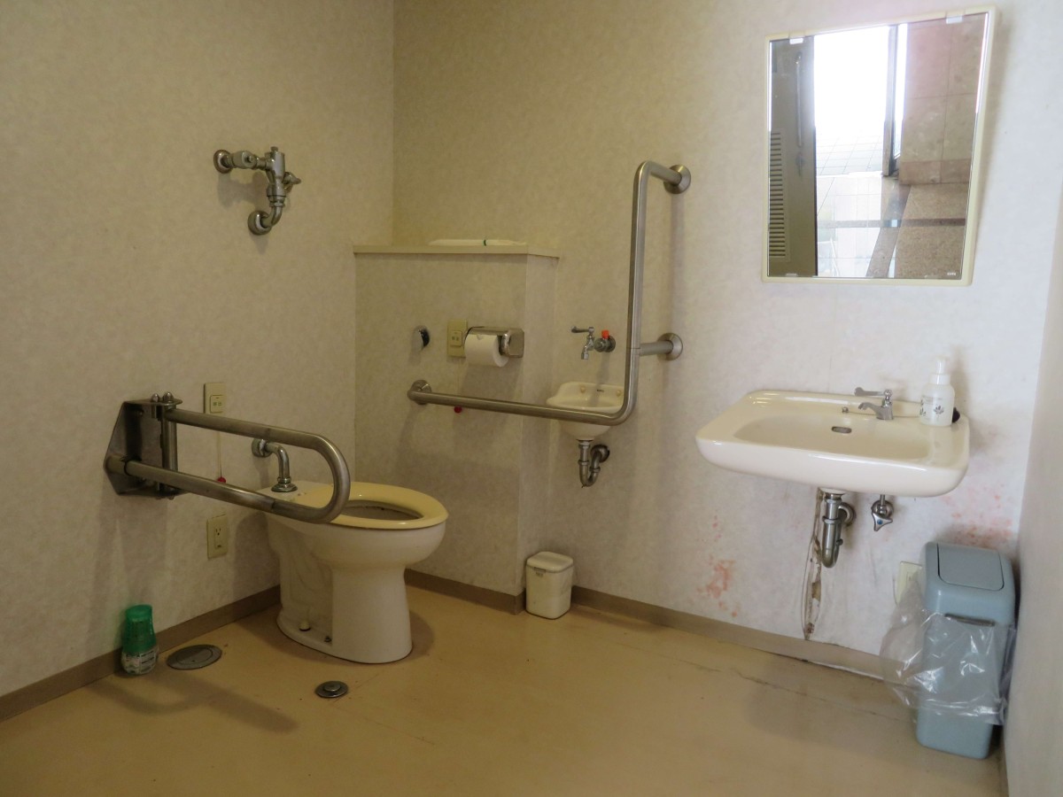 1階 男性用一般トイレ 入口開放 入口幅82センチ 段差5センチ 女性用も同じ