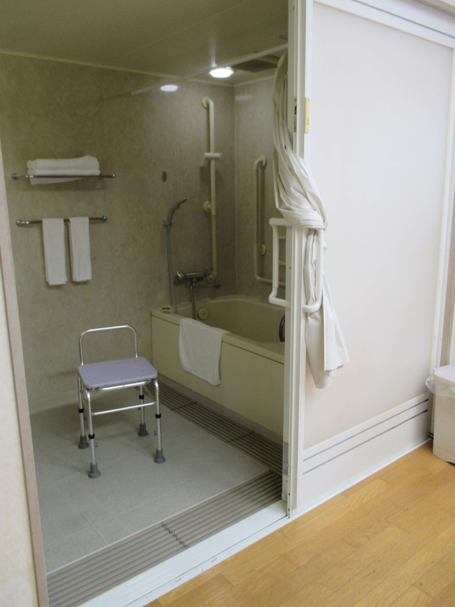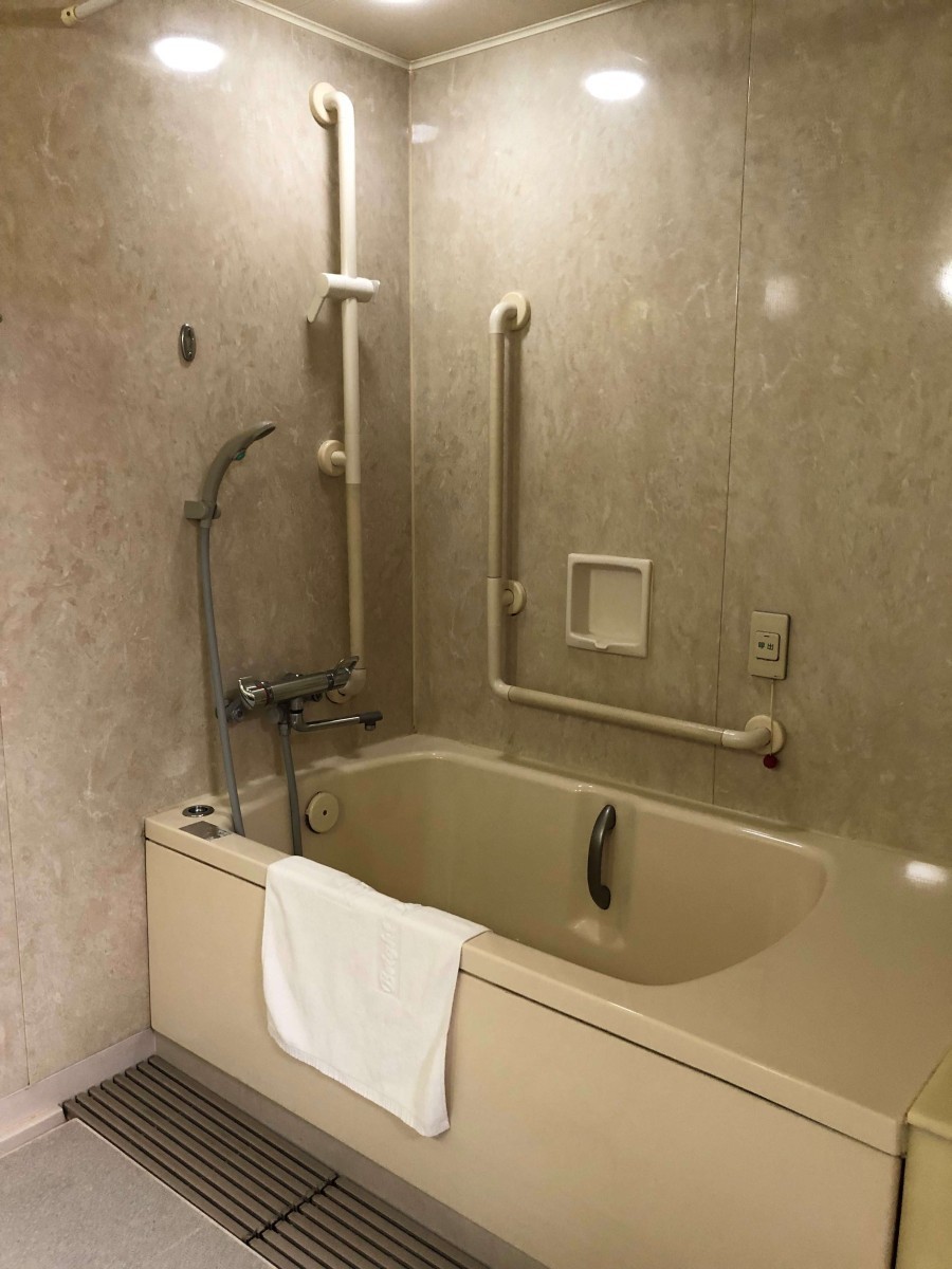 201号室 ハンディキャップルーム 浴室 浴槽廻り手すりあり 浴槽に腰を掛けるスペースあり