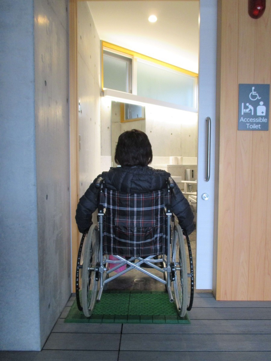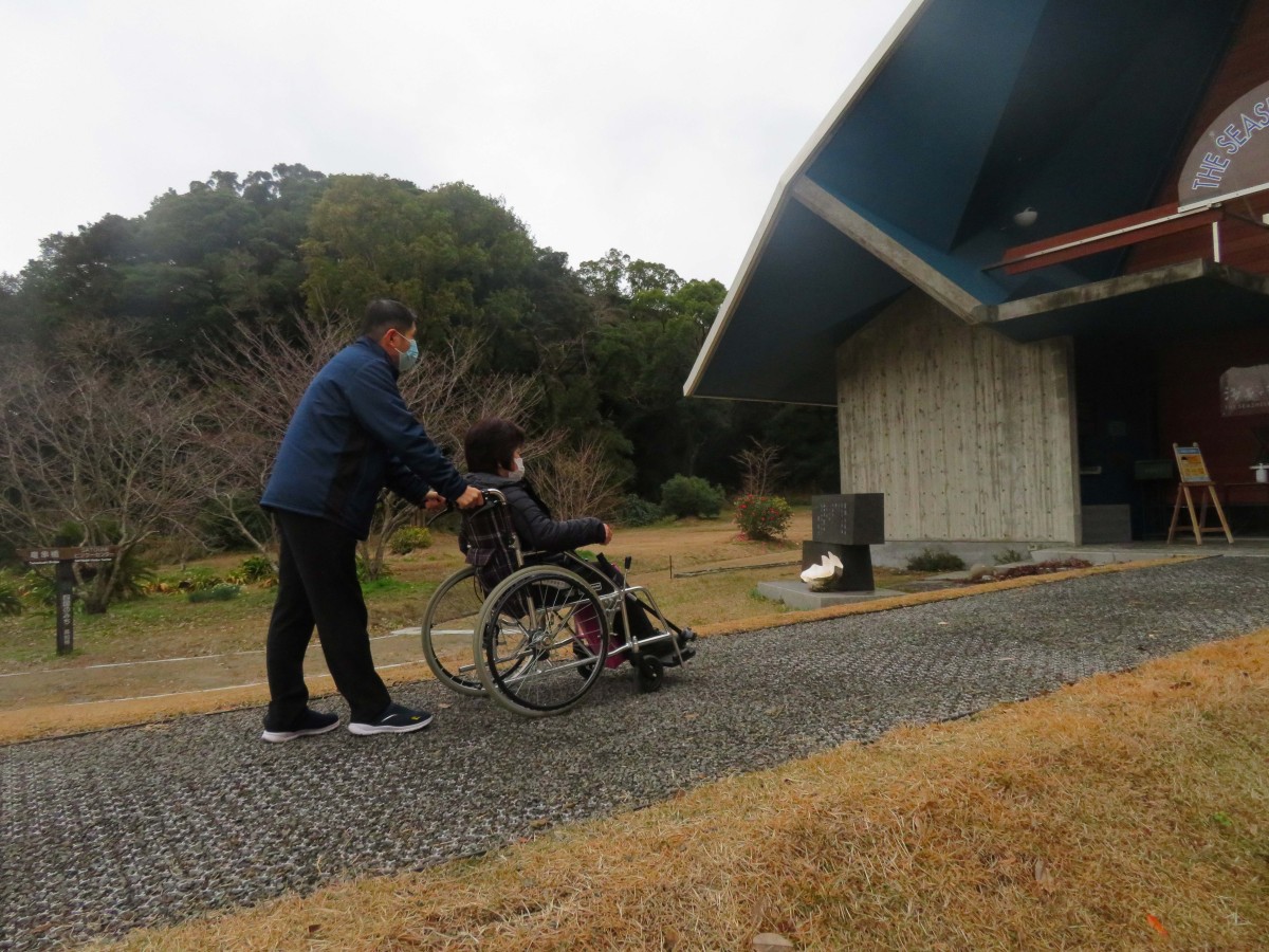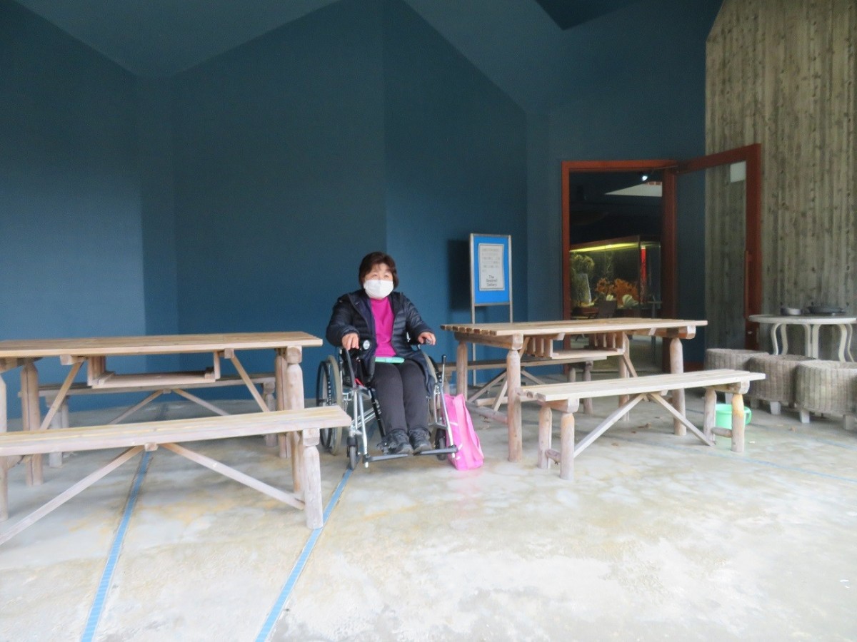 ・海のギャラリーの2階への動線は階段で、エレベーターはない。車いす等で2階に上がる場合、スタッフに声をかければサポートできるが、常駐が1名になる事があるため可能な限りになる。