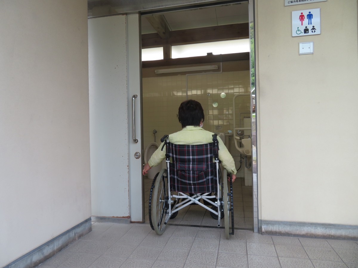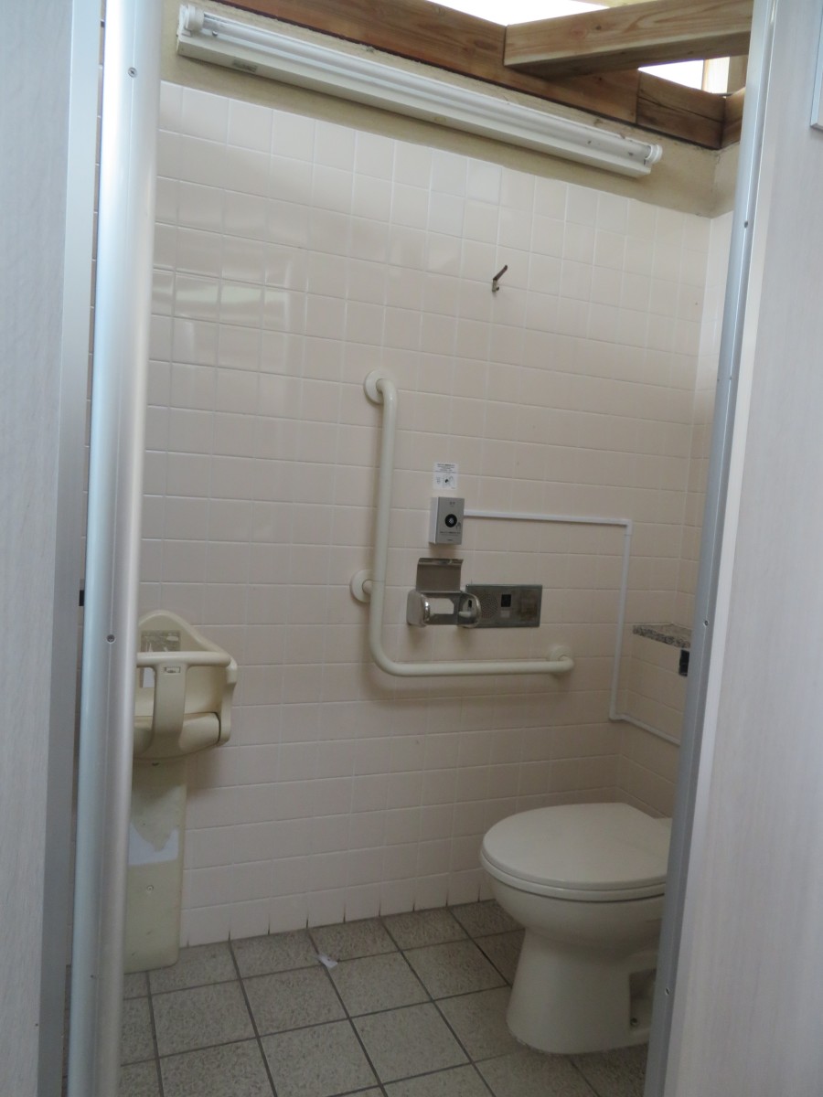 トイレ棟(しおかぜ公園) 車いす対応トイレ スライド戸 入口幅99センチ
