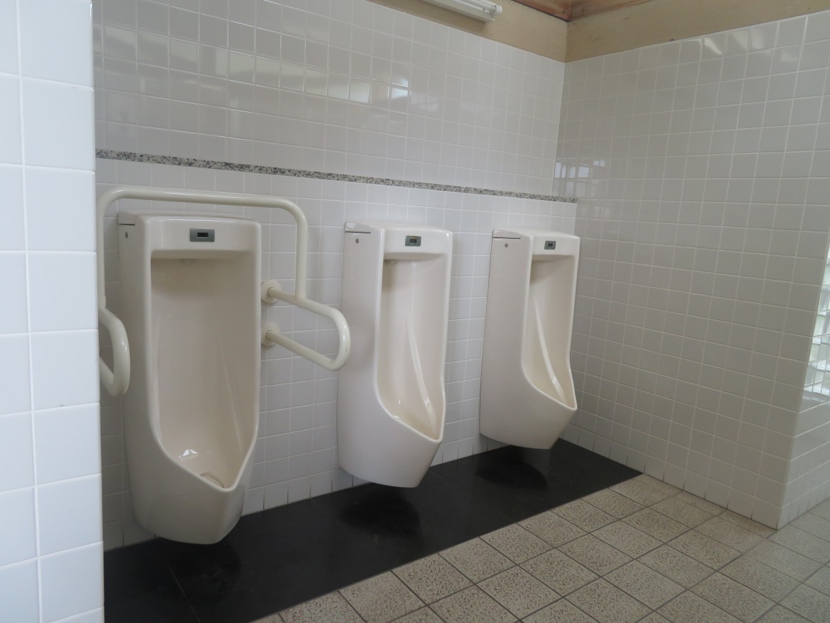 トイレ棟(しおかぜ公園) 一般男性用トイレ 小便器 3器 内1器に手すりあり